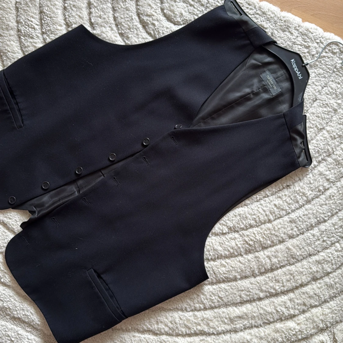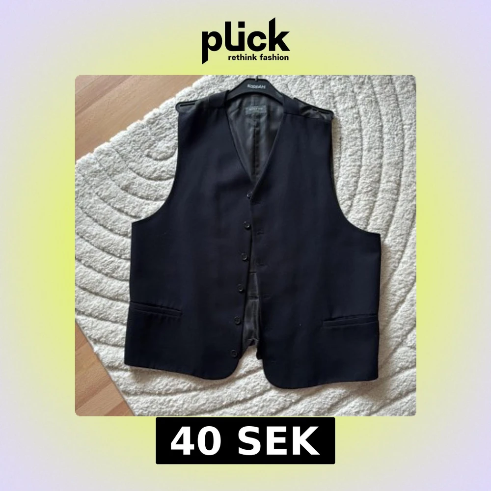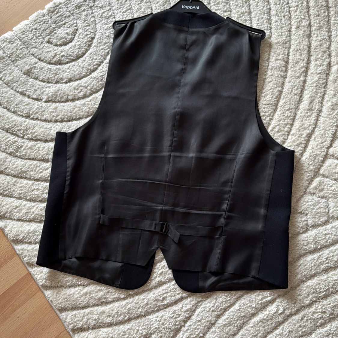 Klassisk svart kostymväst från KappAhl med snygg v-ringning och knappar framtill. Västen har två fickor fram och justerbart band i ryggen. Utsidan är slät och insidan har ett glansigt foder för extra komfort. Perfekt för en dressad look.