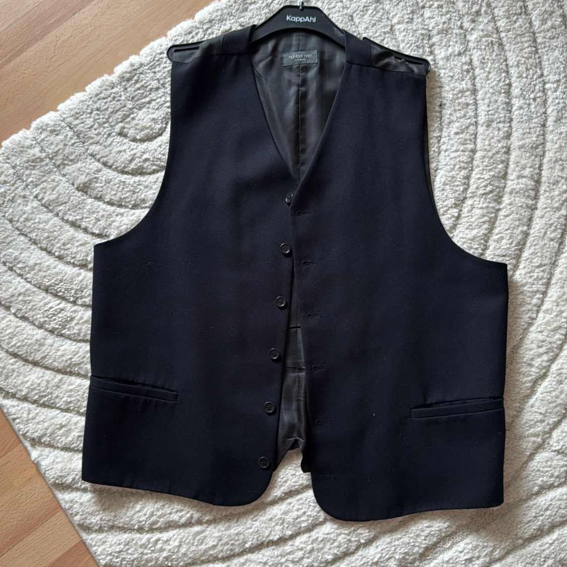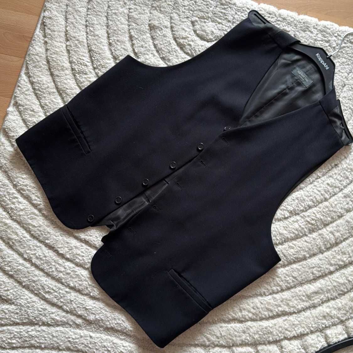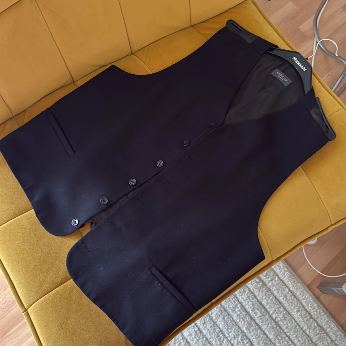 Klassisk svart kostymväst från KappAhl med snygg v-ringning och knappar framtill. Västen har två fickor fram och justerbart band i ryggen. Utsidan är slät och insidan har ett glansigt foder för extra komfort. Perfekt för en dressad look.