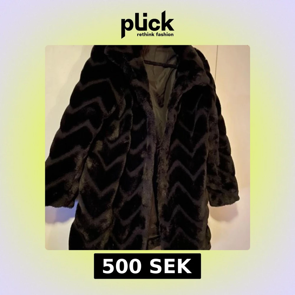 Säljer en svart pälsjacka med snyggt zigzag-mönster. Jackan har en fluffig och lyxig känsla, perfekt för dig som vill sticka ut med en cool look. Den har lång ärm och är fodrad på insidan för extra komfort. Passar dig som gillar statement-plagg.