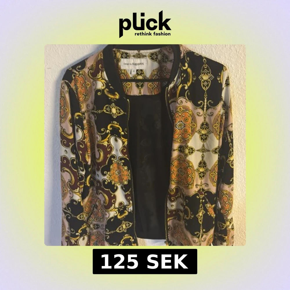 Snygg bomberjacka från KappAhl med unikt mönster i svart, gult, orange och beige. Jackan har dragkedja framtill, ribbade muddar och coola detaljer. Perfekt för dig som vill sticka ut med en färgstark och trendig look.