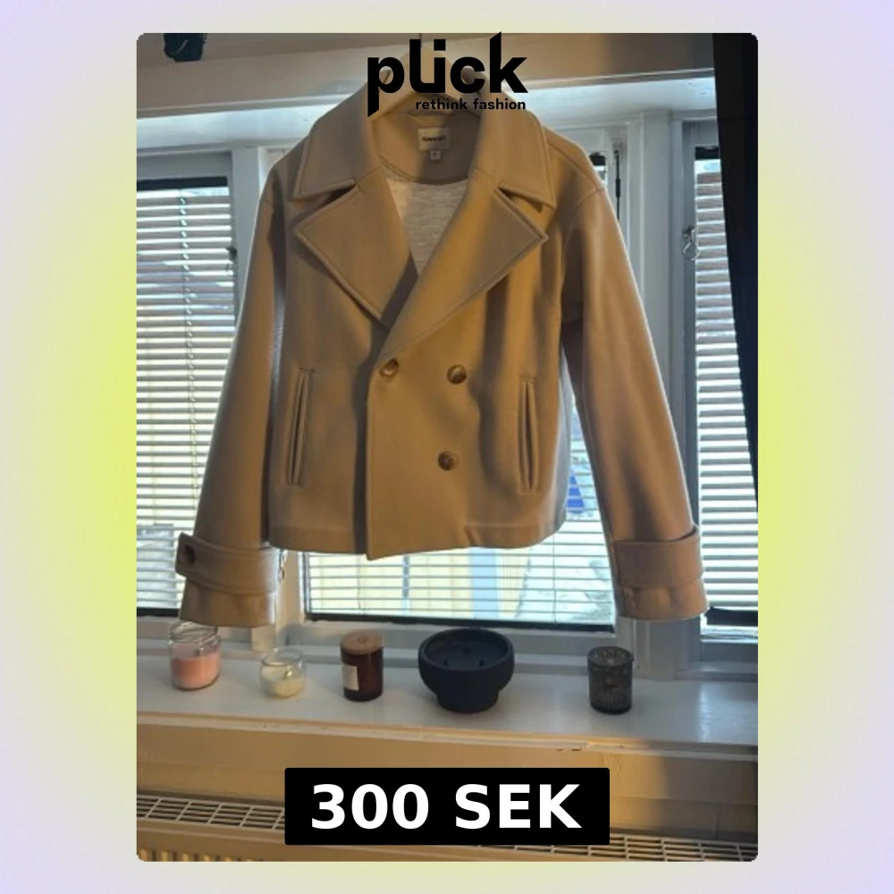 Stilren beige kavaj från Kappahl med dubbelknäppning och breda slag. Kappan har långa ärmar, två fickor framtill och en croppad passform. Perfekt för dig som gillar klassisk men trendig stil.