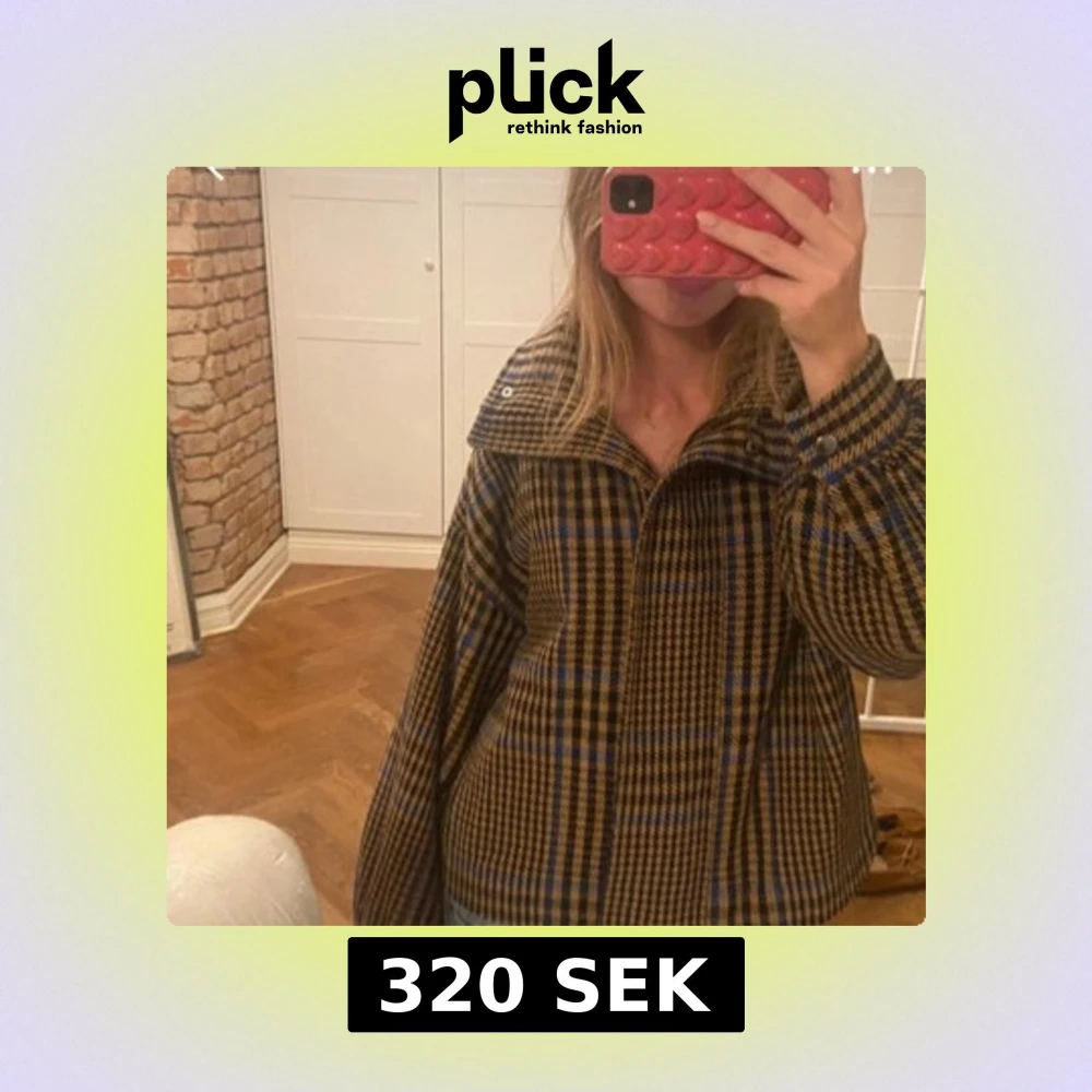 Säljer en snygg overshirt med rutigt mönster i brunt, blått och svart. Jackan har en bred krage, dragkedja framtill och långa ärmar. Perfekt för dig som gillar en chill och trendig stil med lite oversized passform.