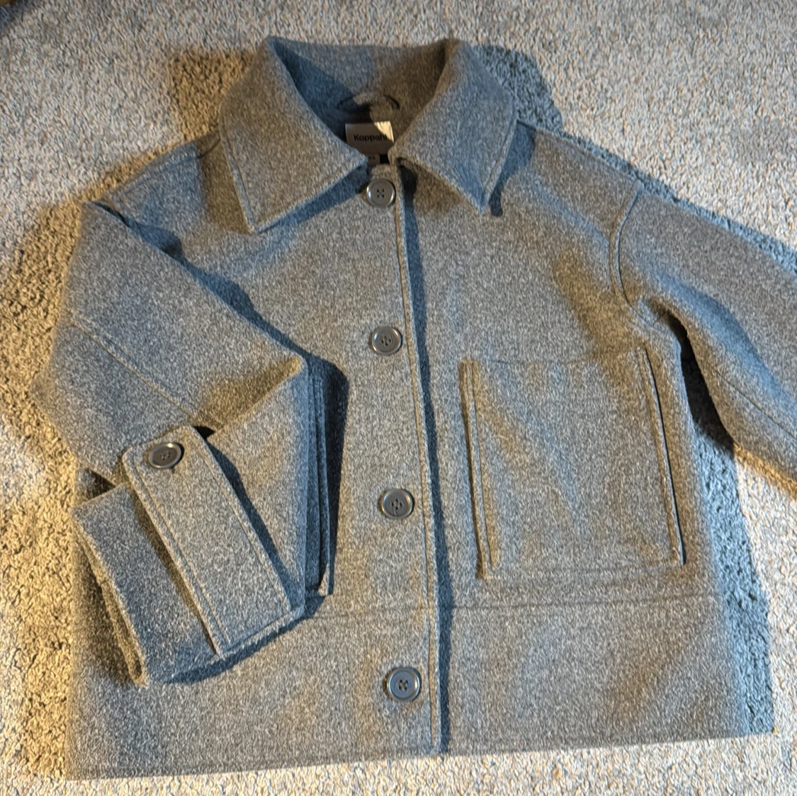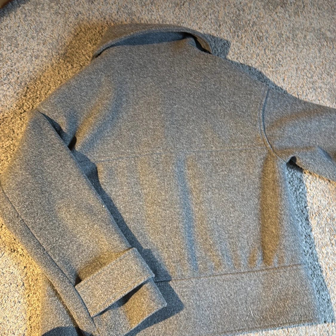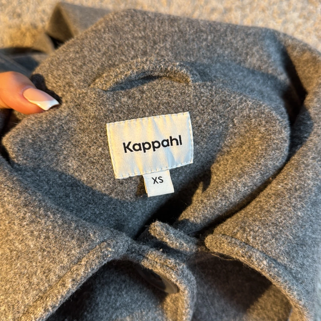 Stilren grå kappa från Kappahl i storlek XS. Jackan har klassisk krage, stora knappar framtill och två rejäla fickor. Tillverkad i mjukt ullblandat material och har långa ärmar med knappdetalj vid mudden.