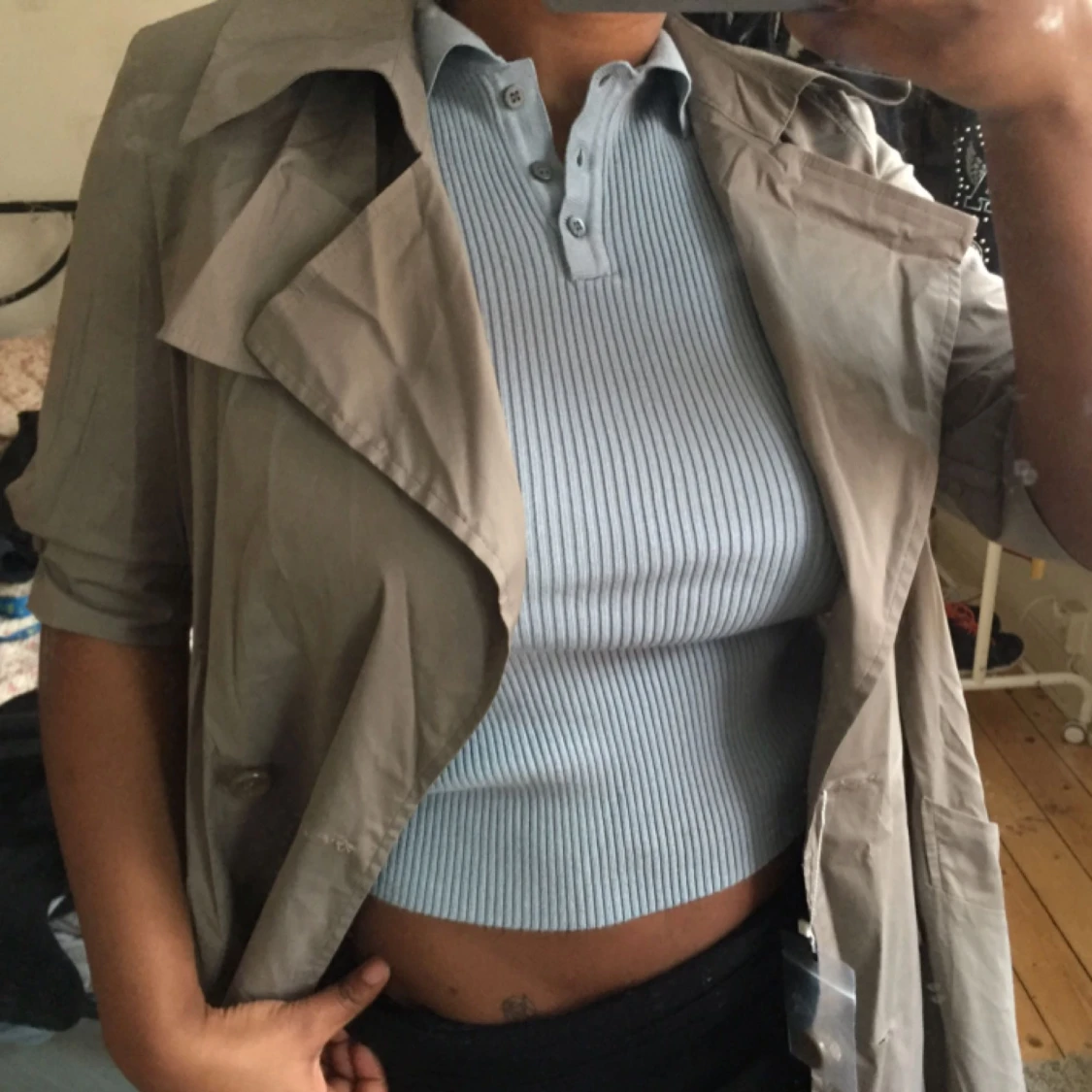 Samma som den svarta lång beige kappa i tjock tyg kan användas också i våren!