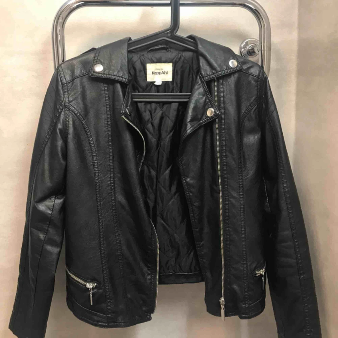 Säljer min skinnjacka då den inte kommer till användning, annars hur fin som helst! Har knappt använt den då jag har flera skinnjackor. Jackan är ifrån Kappahl. Storlek XS - S Kan skicka fler bilder vid behov!