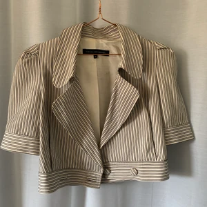 Superfin kort kavaj i randigt tyg. Använd sparsamt, perfekt skick! Storlek 10 (S), modellen på bilden är XS.