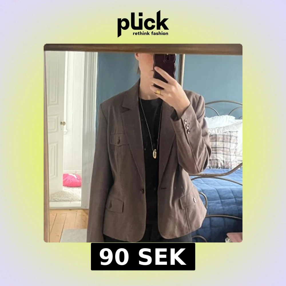 Säljer en brun kavaj från Cappuccini med klassisk krage och tre fickor framtill, alla med lock och knapp. Kavajen har en diskret rutig struktur och stängs med två knappar. Perfekt för en stilren och dressad look.