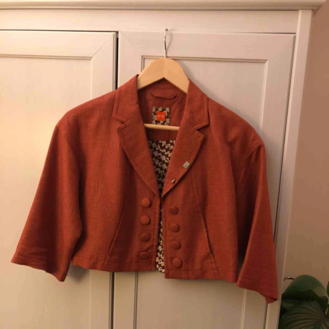 Midjekort kavaj från Hugo Boss i trendigt kopparröd. Snygg till höga jeans. Sällan använd.