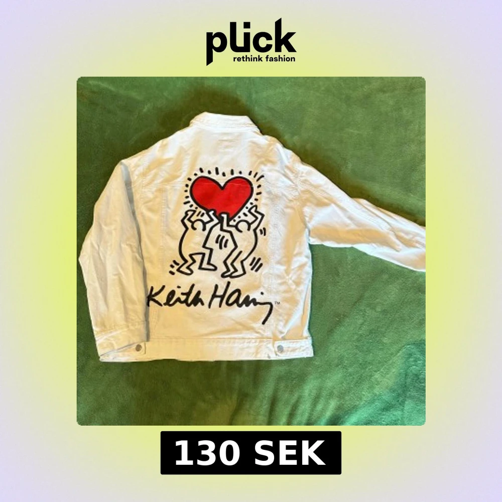 Overshirt med Keith Haring tryck på ryggen, collab med H&M, unik och bra skick. Storlek L, vit.