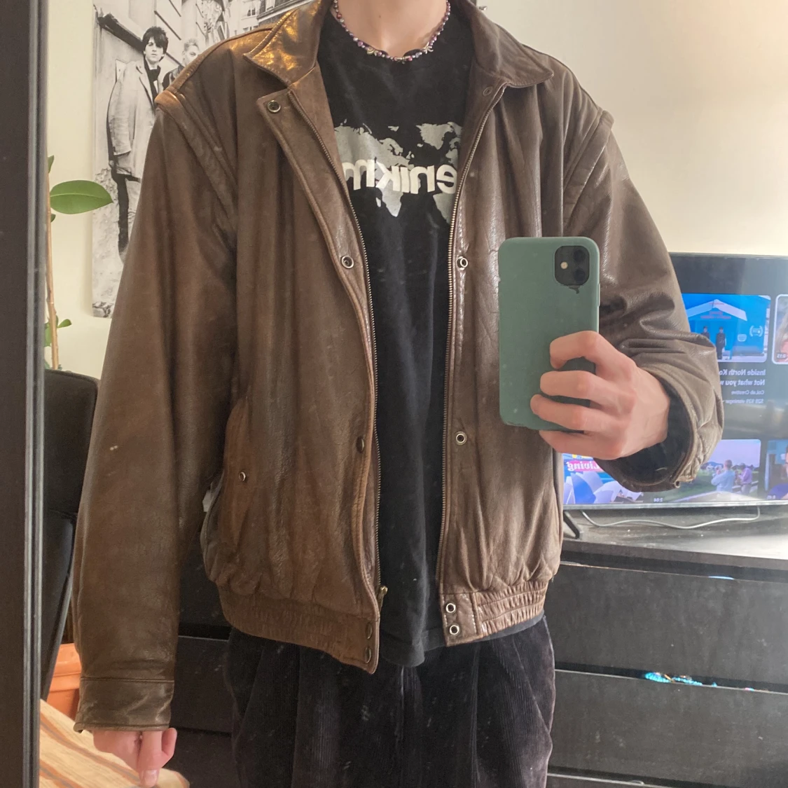 Skitsnygg vintage läderjacka i storlek XXL men det innebär mest att den har snygg stor passform på alla 🥰 för alla indierockare eller läderavnjutare