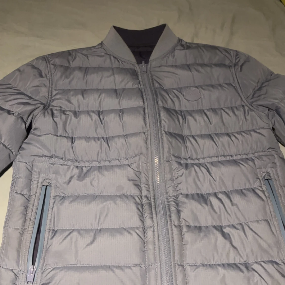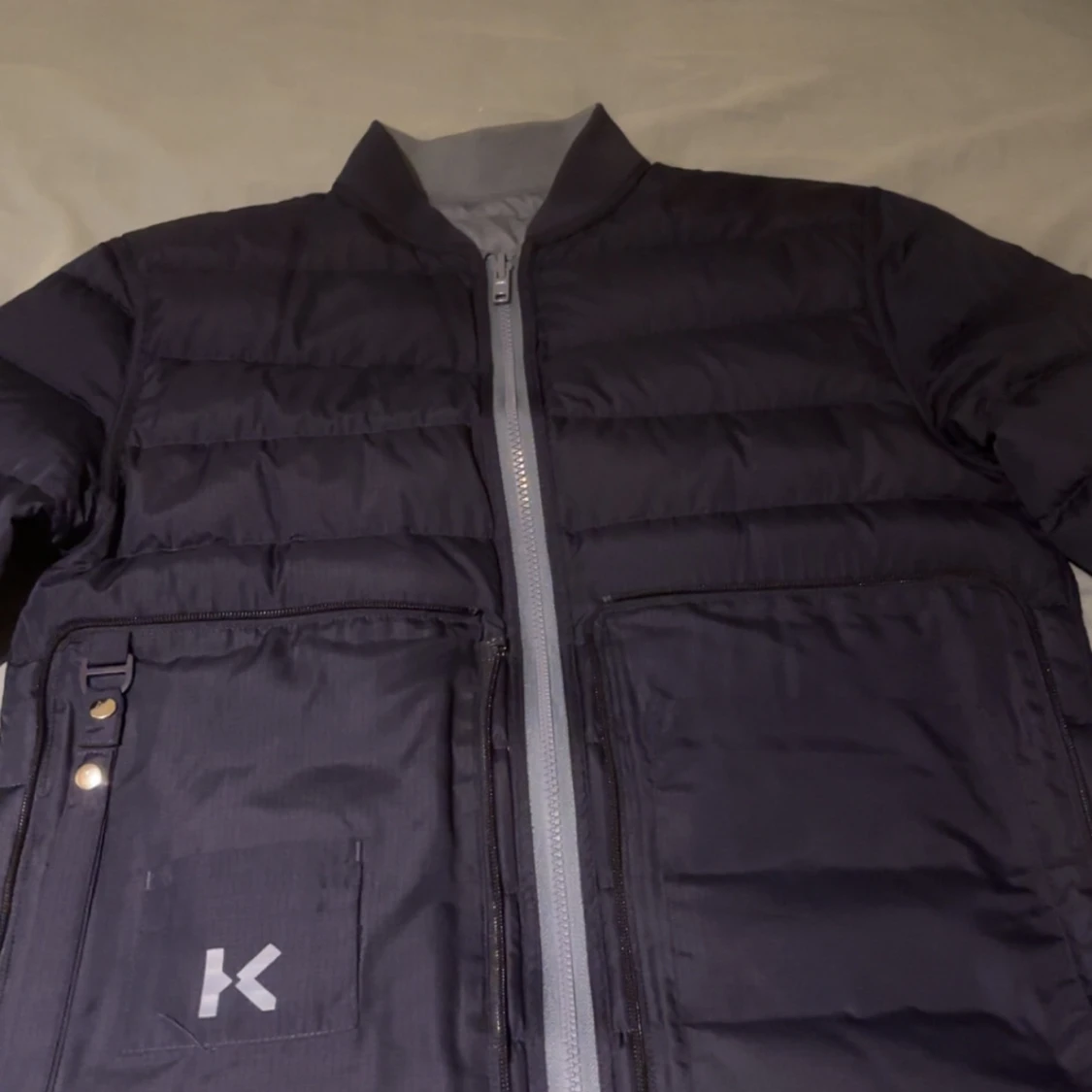 Den är i bra skick, det är en vändbar jacka där du kan ha den på två sätt