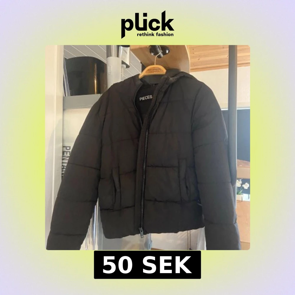Bild 1 svart vinterjacka från pieces i storlek XS pris 100kr, bild 2 topp vet ej ifrån vart eller storlek men skulle gissa på XS pris 20kr, Bild 3 en vit klänning från HM i storlek S prislapp kvar pris 20kr, Bild 4 svart teddyjacka från Only i XS pris 70kr, bild 5 svarta kostymbyxor ifrån Vero Moda i storlek 32/XS knappt använda pris 70kr.