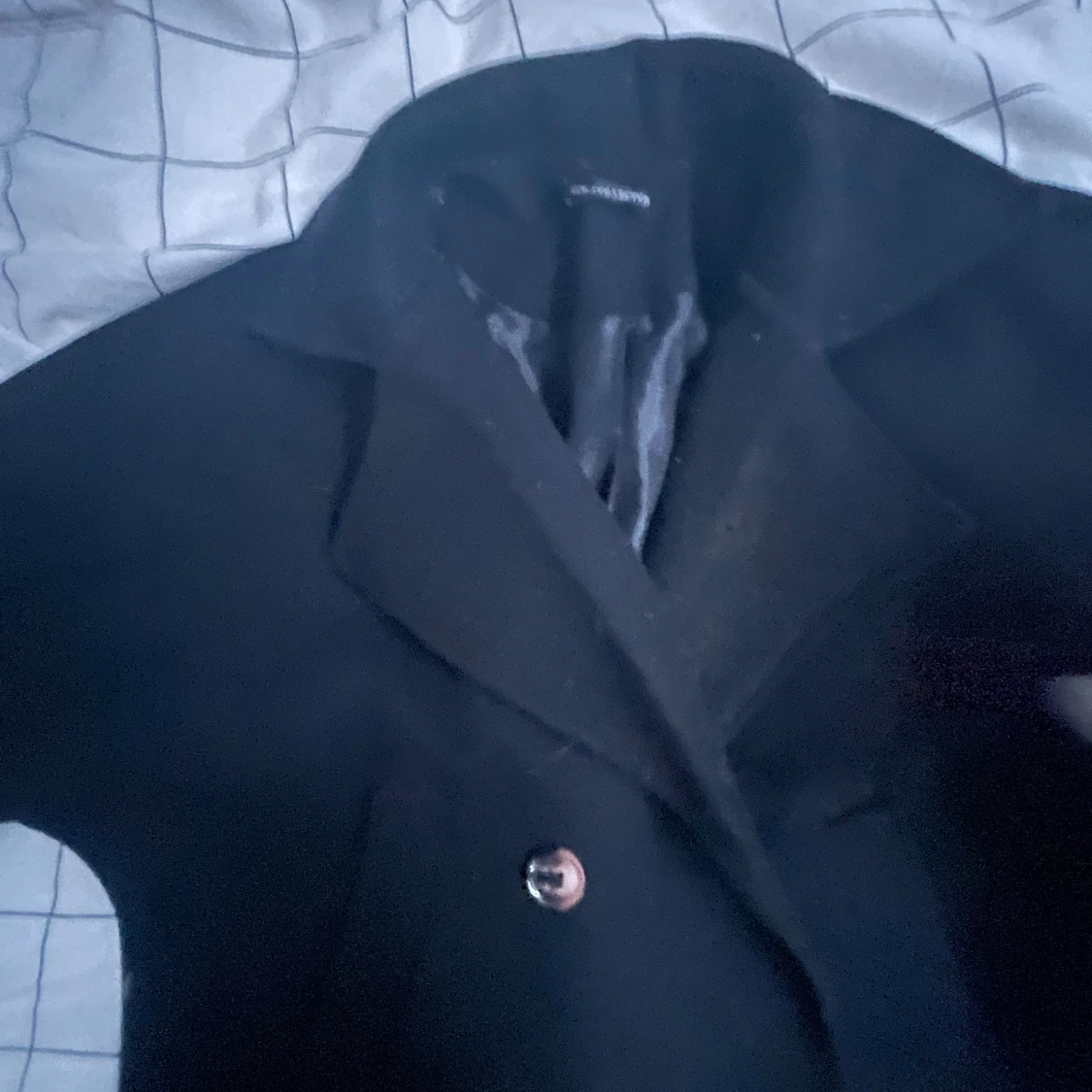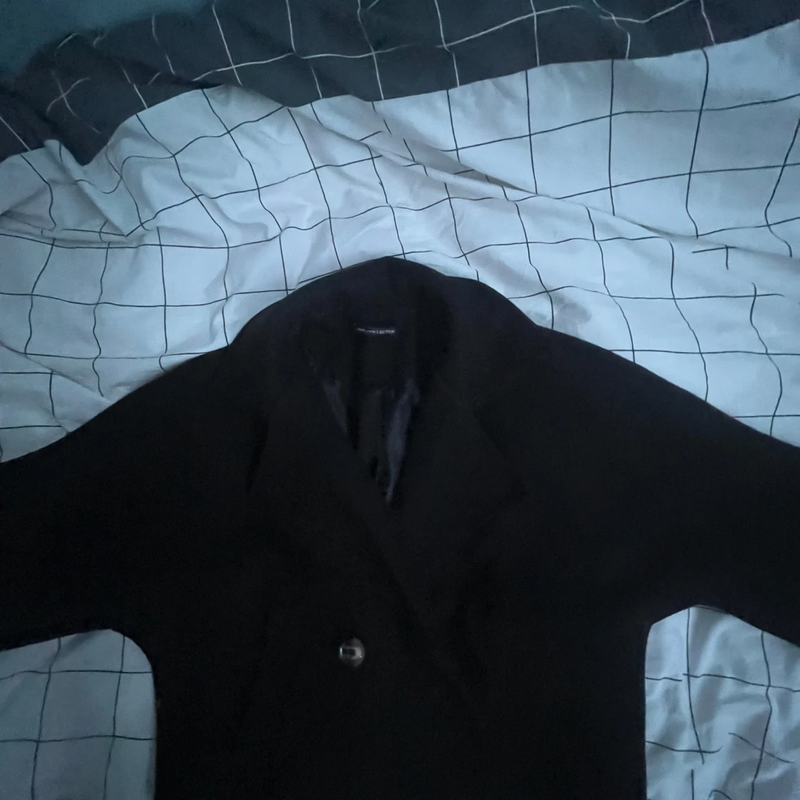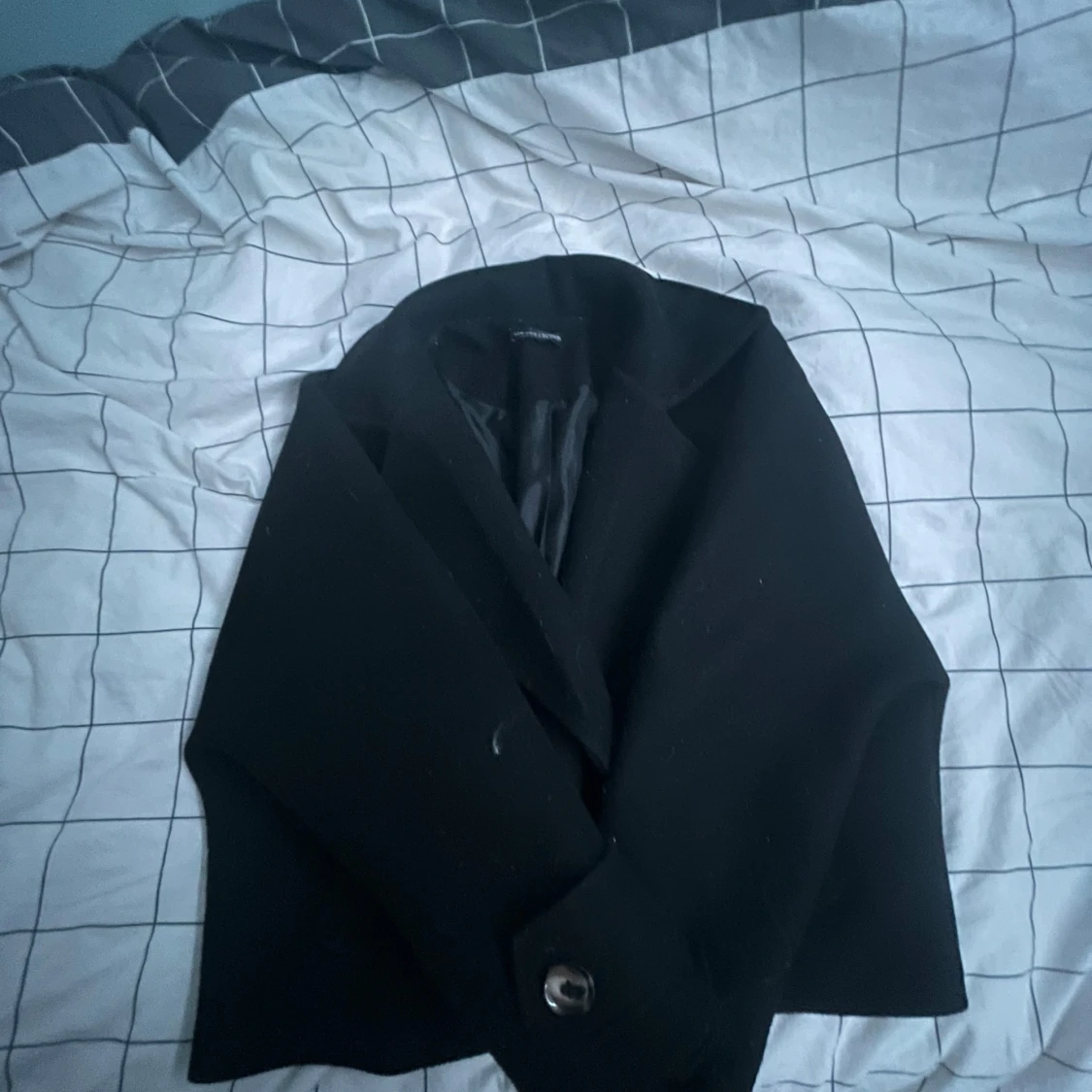 En fin svart höst kappa från missäy med enkel knäppning endast en knapp och siden material på insidan skriv gärna fö fler bilder😻