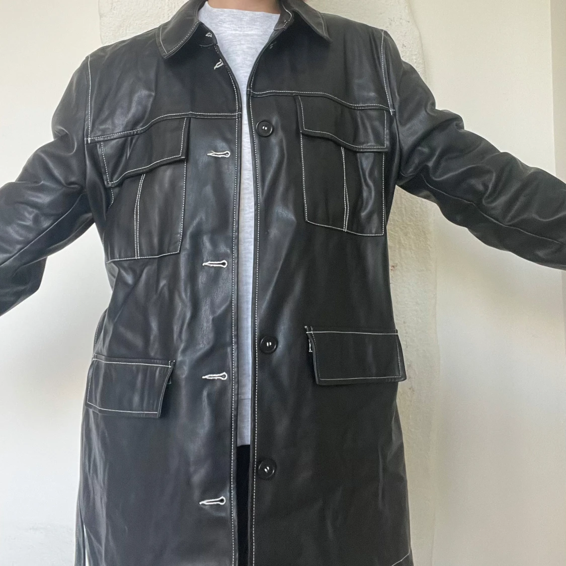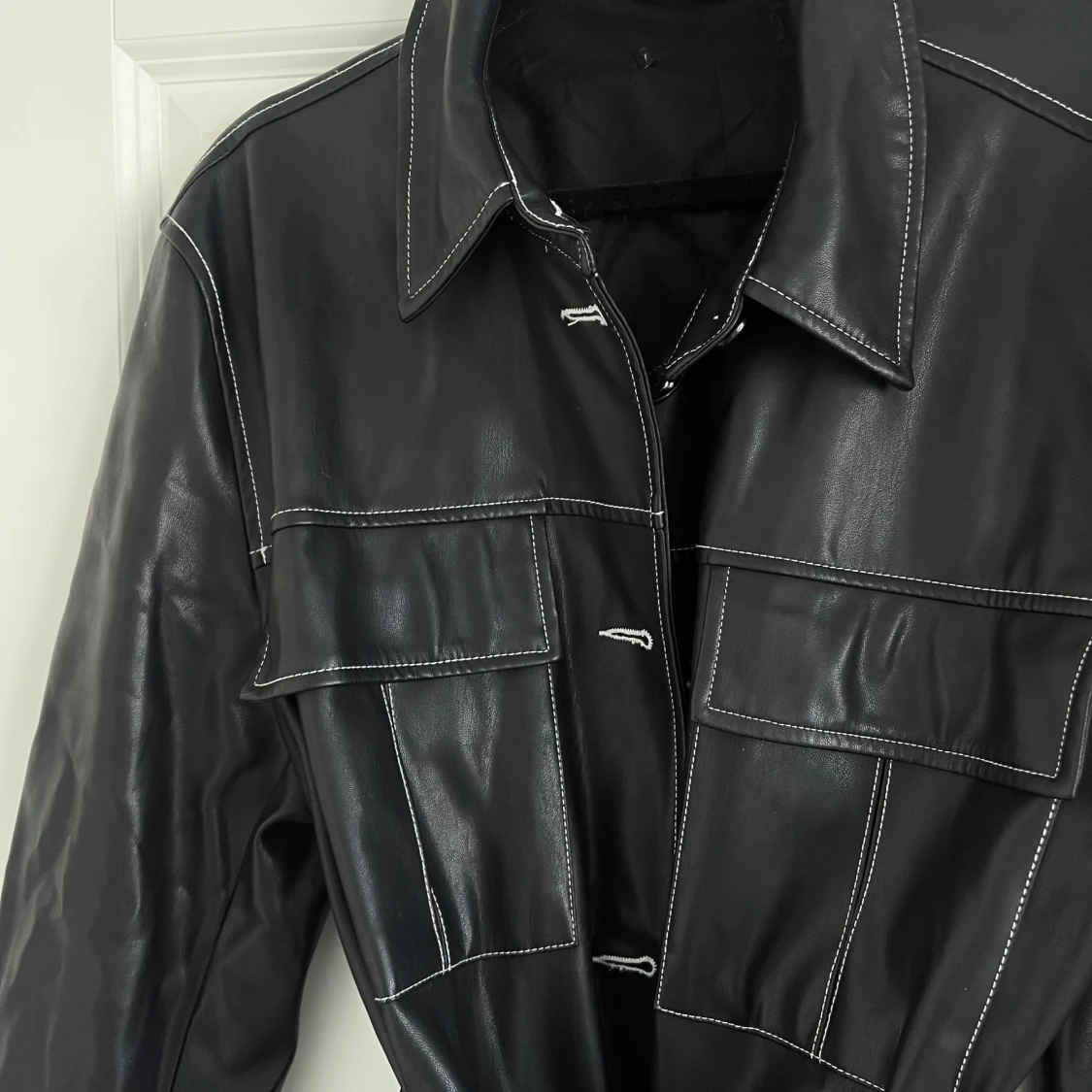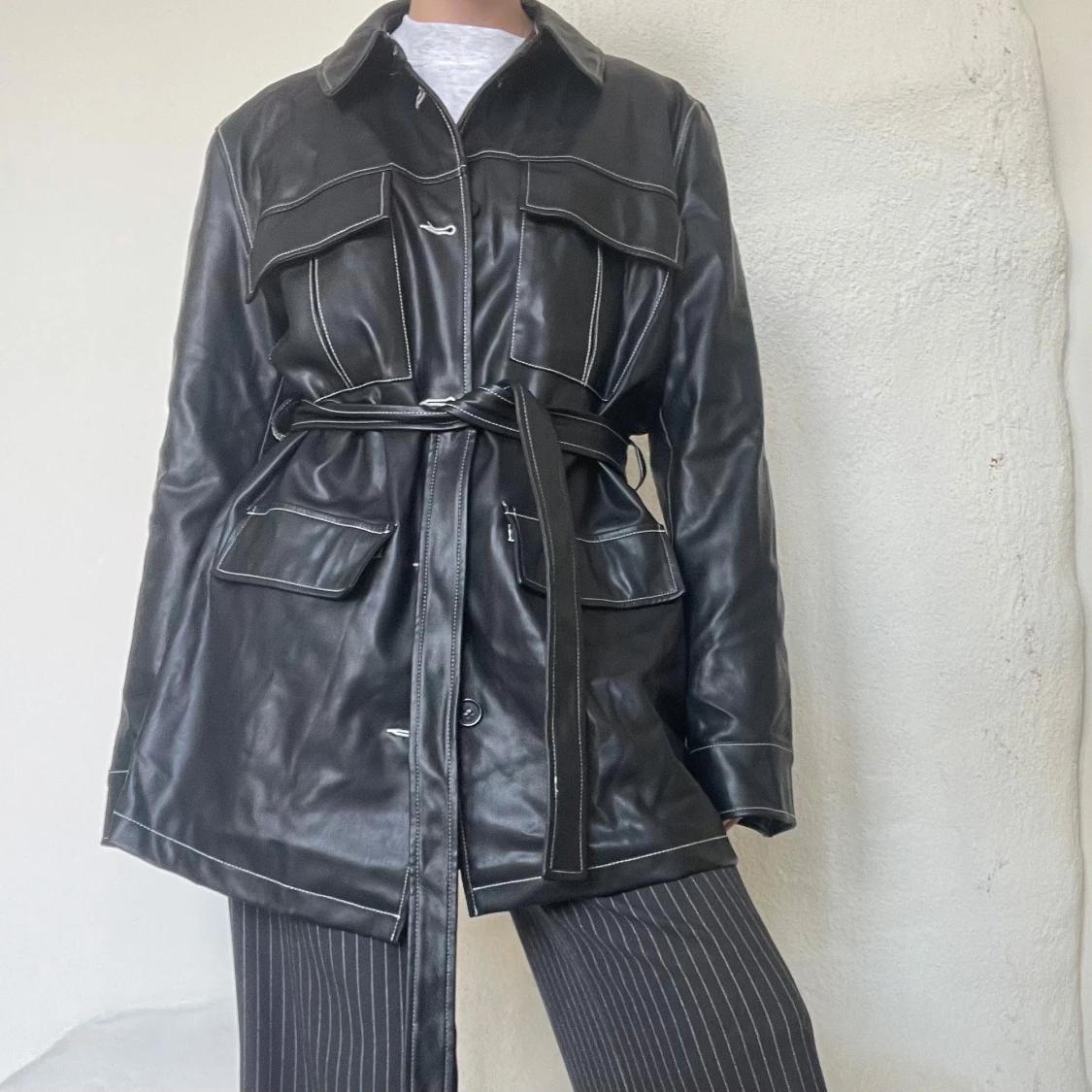Oversized skinnjacka med knytning fram, alla lappar bortklippta men är från Gina tricot. En knapp saknas.