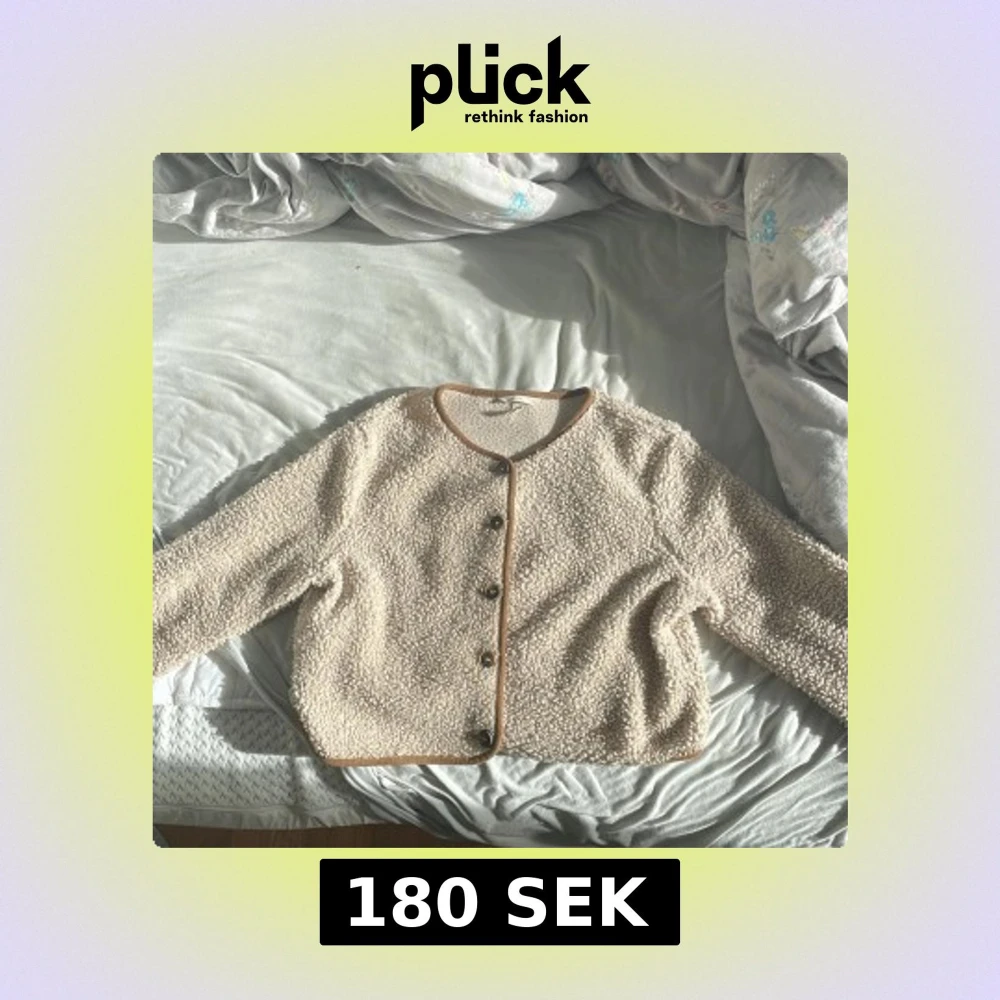 Supermjuk och mysig beige teddyjacka från H&M med bruna kantdetaljer och knappar framtill. Perfekt till hösten den är varm och gosig i.
