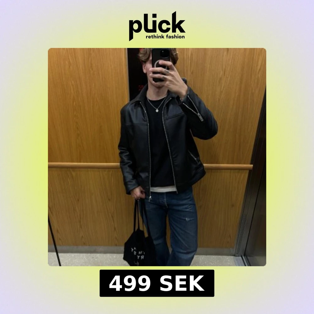 Snygg svart skinnjacka från H&M i storlek M. Dragkedjor på ärmarna och framfickorna, jackan har klassisk krage och är perfekt för en stilren look. Passar bra till jeans och sneakers för en avslappnad stil. (Konstläder) 800-900kr nypris