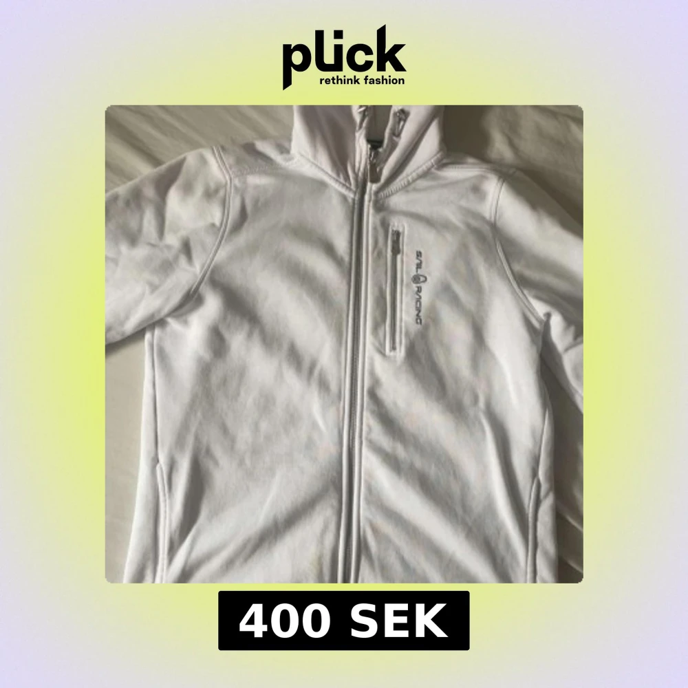 Säljer en vit fleecejacka från Sail Racing med huva och hel dragkedja. Jackan har en bröstficka med dragkedja och logga på bröstet. Mjuk insida och stilren design, perfekt för lager-på-lager. Passar dig som gillar sportig och clean stil. S/M storlek
