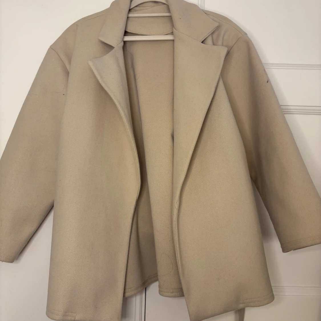 Säljer en beige kappa med bälte i midjan och bred krage. Från missay använd 1-2 gånger men inget man märker!
