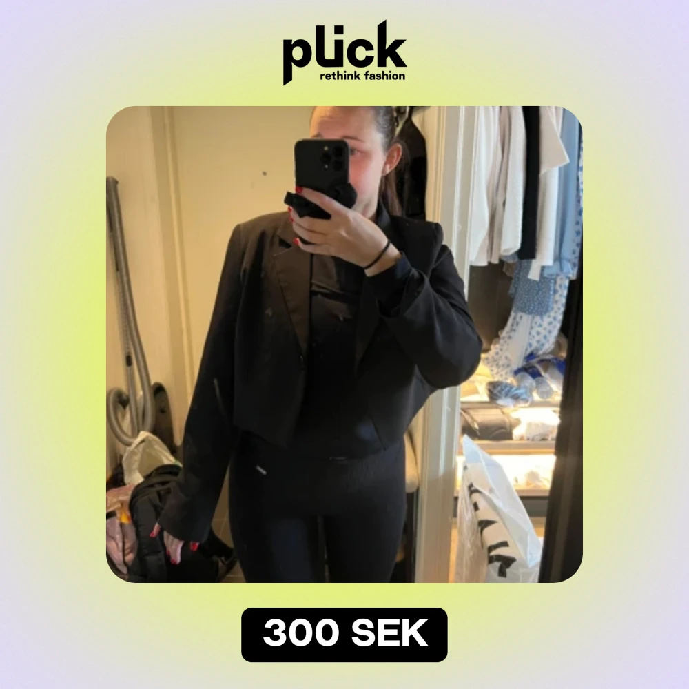 Säljer min korta svarta kavaj, en tunnare modell, använt 2 gånger så helt som ny! En knapp att stänga kavajen, den är liten i storleken men inte ”stel” i materialet!