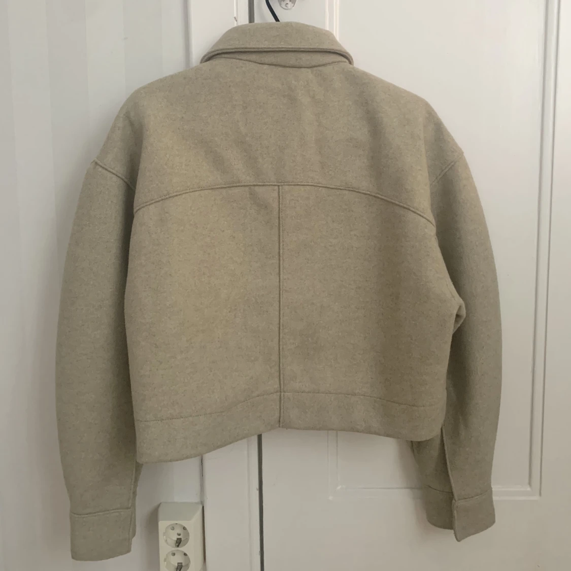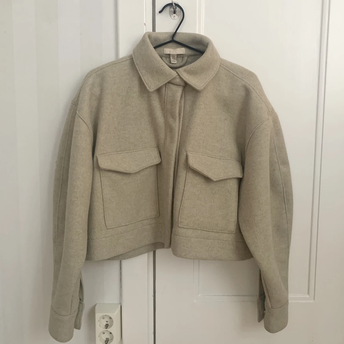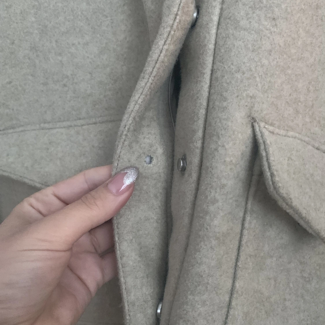 Kort beige oversized i fint skick även om en knapp gått sönder men inget som har stört mig har alltid fått dina komplimanger när jag har den här på mig den känns lyxig :)