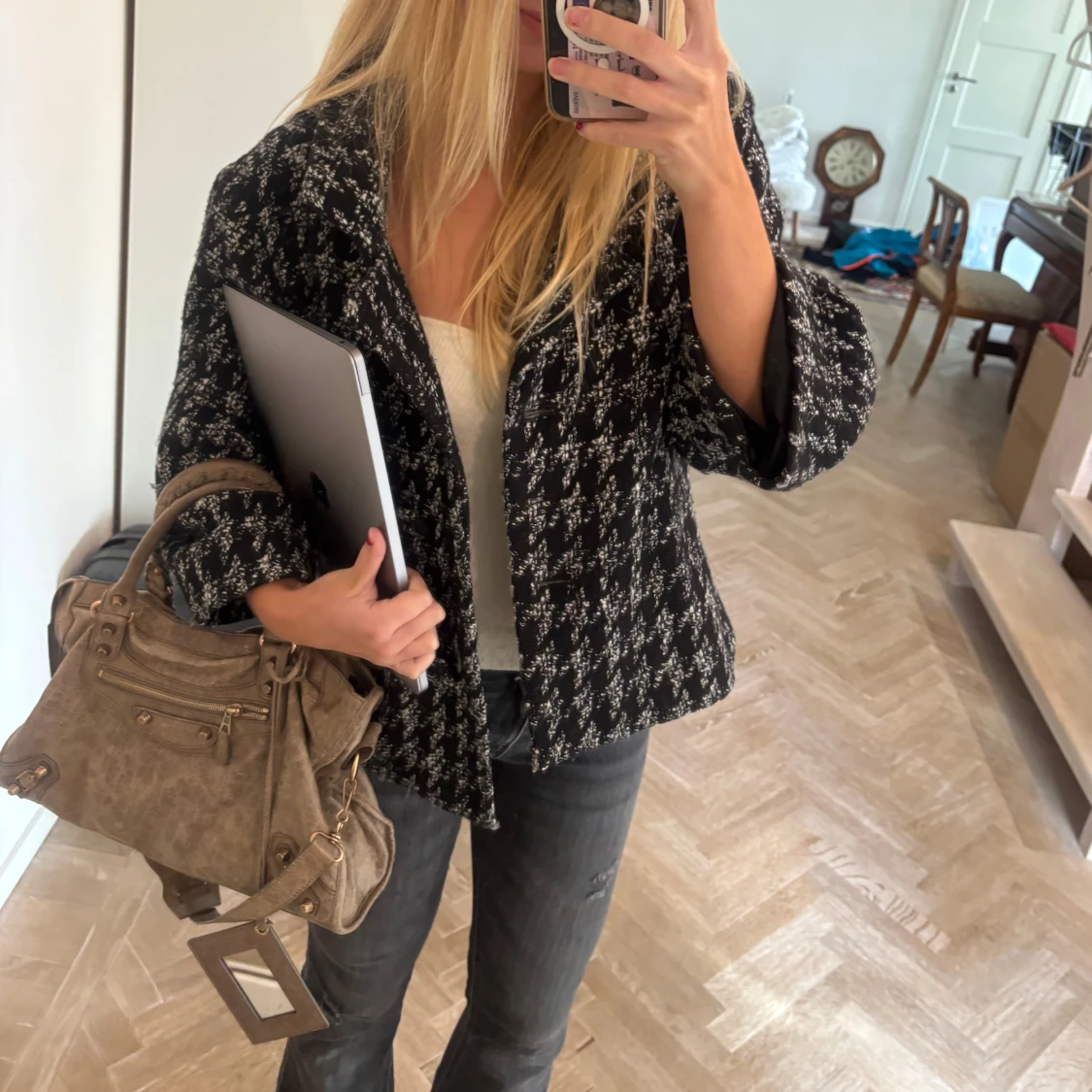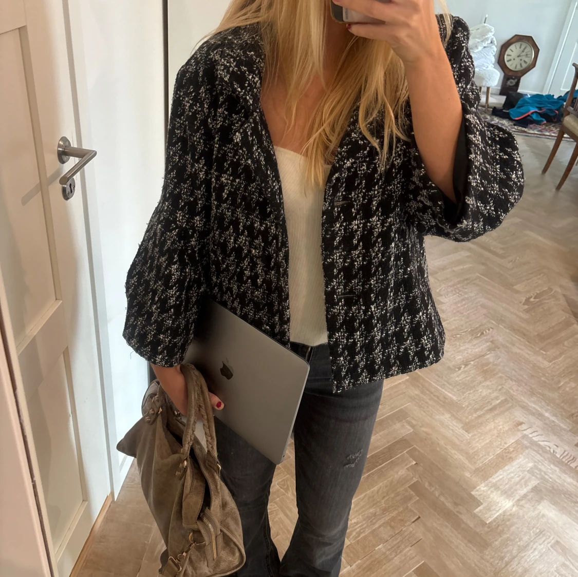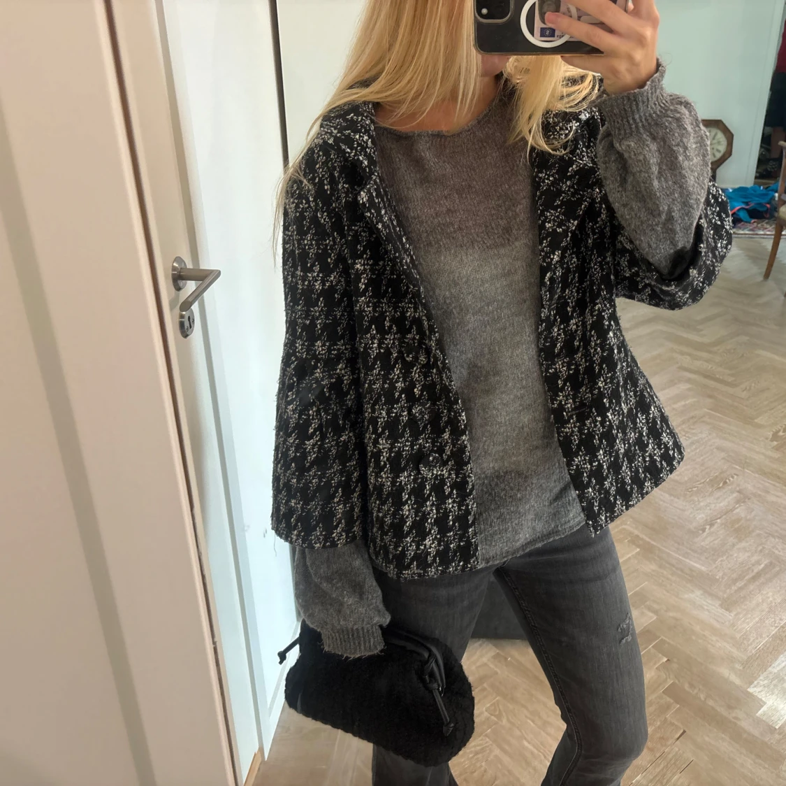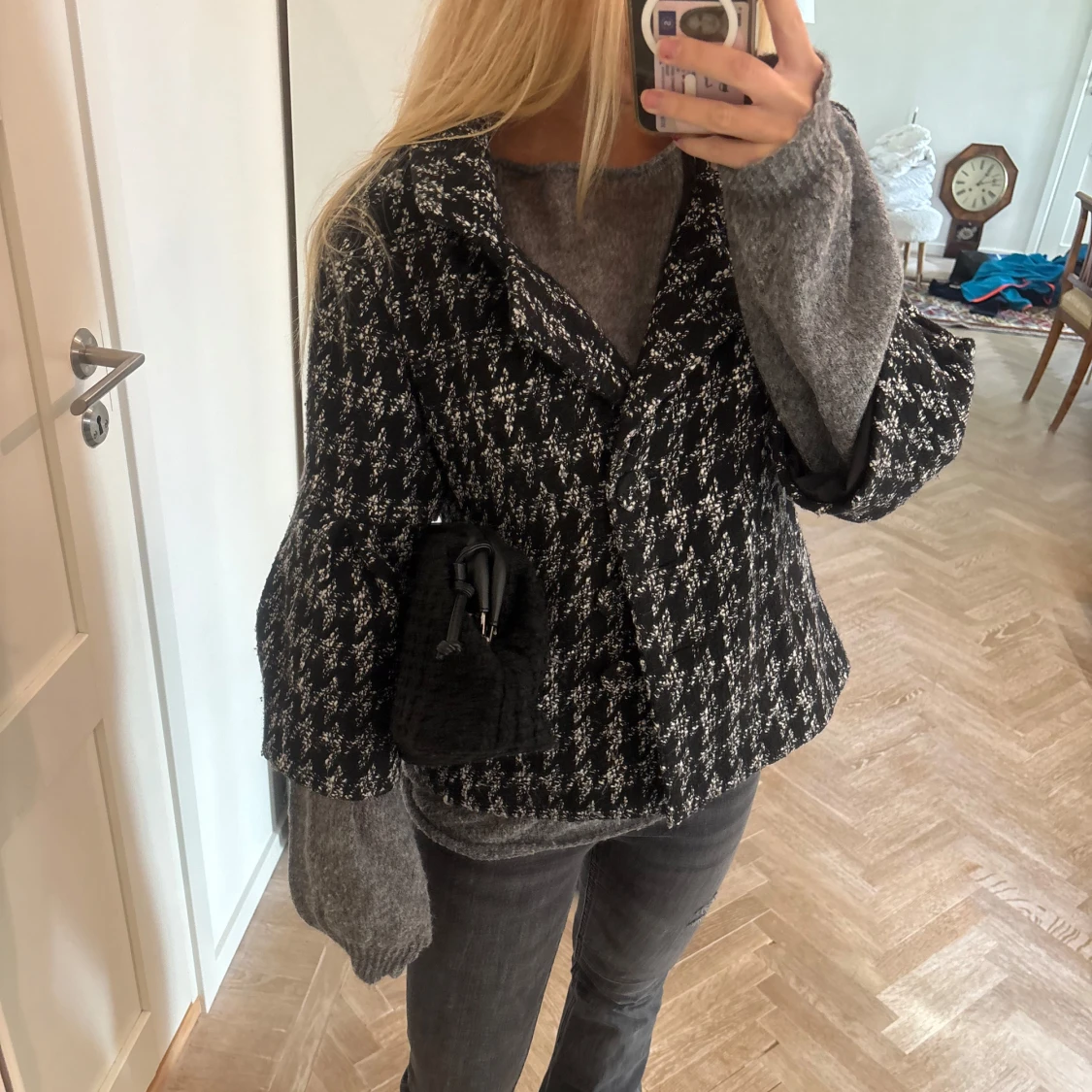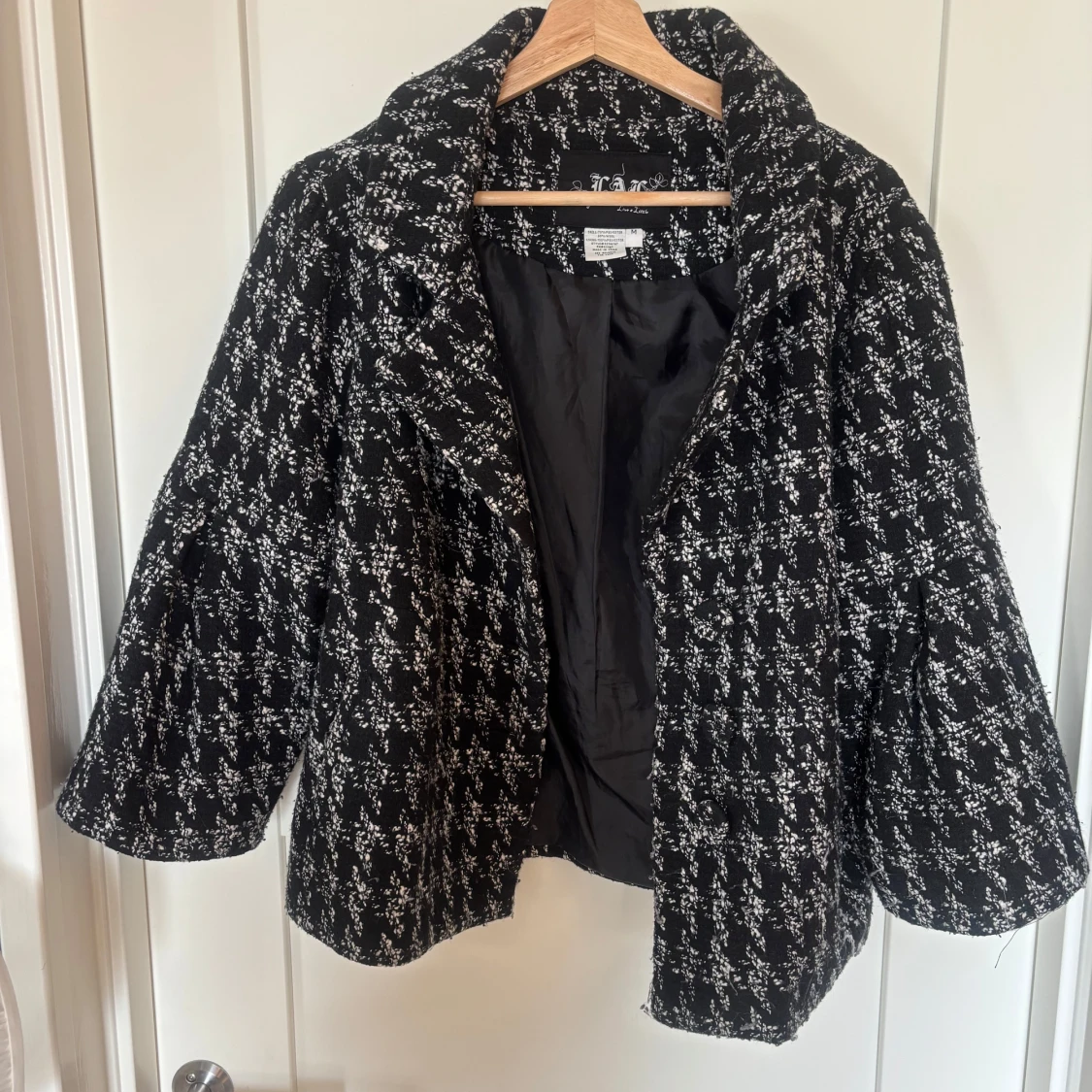 Sååå fin svartvit jacka. Jackan har bred krage, trekvartsärmar. I superfint skick , perfekt till hösten !! 🩷Säljer då jag inte använder den