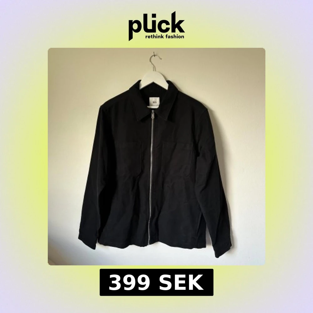 Stilren svart overshirt från Kin i 100% bomull. Jackan har raka linjer, två bröstfickor och hel dragkedja framtill. Klassisk krage och långa ärmar med knapp vid ärmslut. Perfekt för lager-på-lager och enkel att matcha med allt. 3U2
