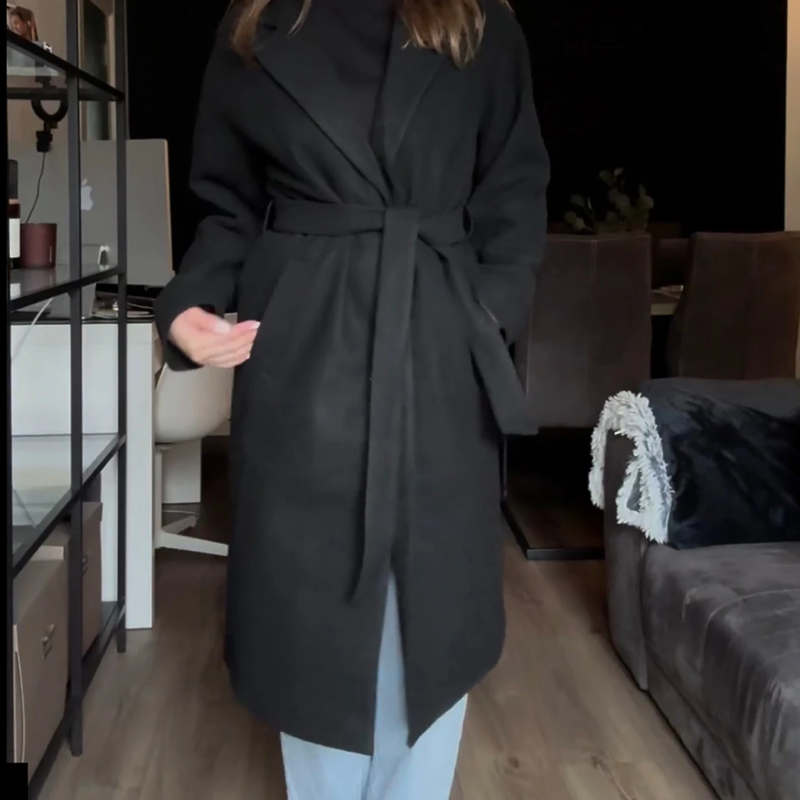 Säljer en svart lång kappa med klassisk krage och stora fickor framtill. Kappan har ett bälte i midjan för snygg passform och är helfodrad. Perfekt för kyliga dagar och ger en stilren look. Stolek L. Priset kan diskuteras vid snabb affär.