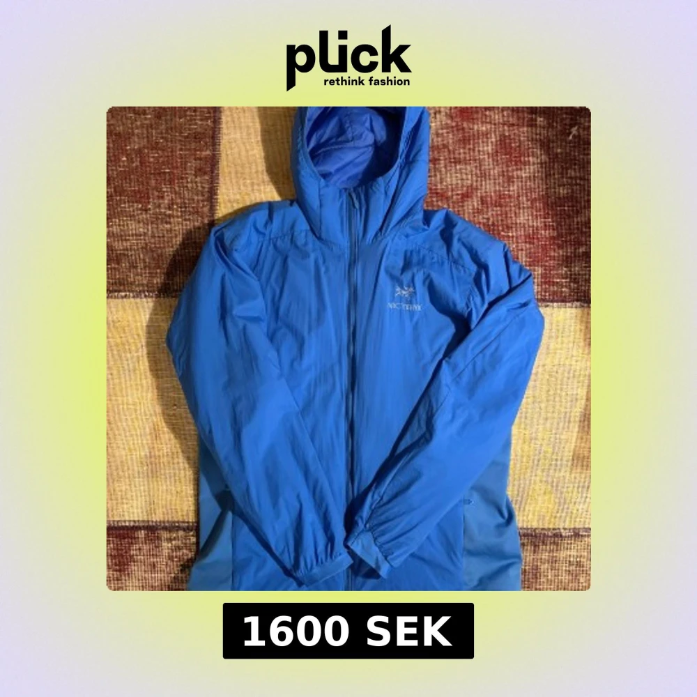 Säljer en blå vindjacka från Arc'teryx i storlek L. Jackan har huva, dragkedja framtill och broderad logga på bröstet. Tillverkad i polyester, perfekt för dig som gillar outdoor och vill ha en lätt jacka med clean look.