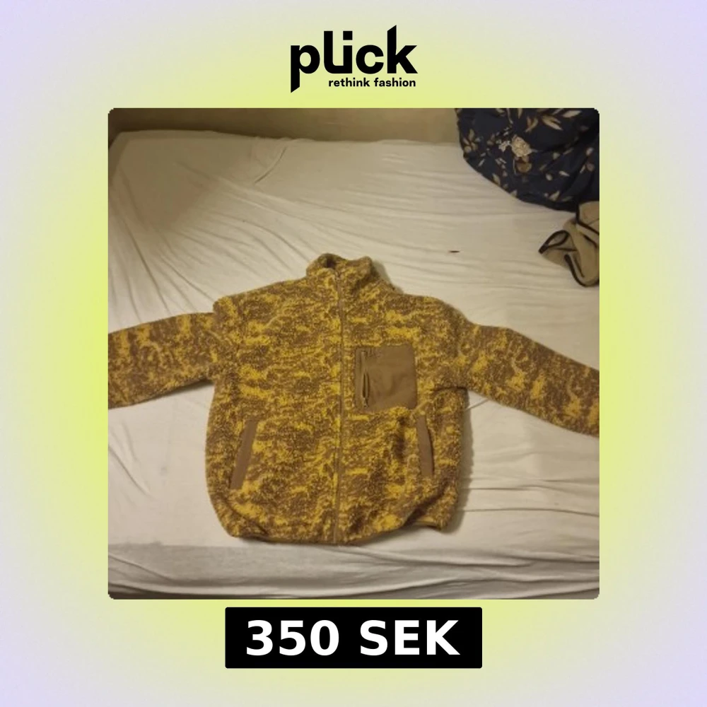 Säljer en riktigt mysig teddyjacka i gul och brun mix. Jackan har hel dragkedja, hög krage och två fickor framtill med snygga detaljer. På bröstet finns en extra ficka med dragkedja. Perfekt för dig som vill ha en varm och cool look.