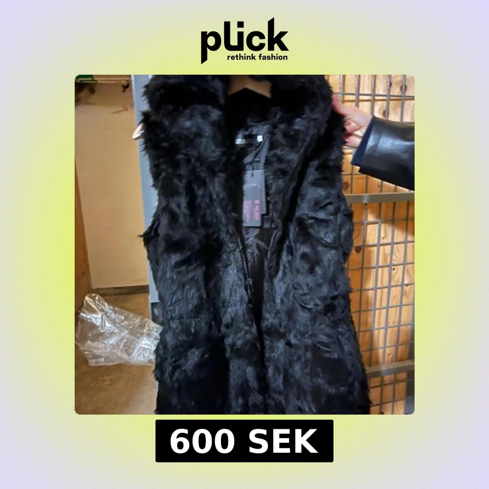 Snygg svart pälsväst från Jen Long med fluffig känsla och hög krage. Västen har en stilren look och är fodrad på insidan för extra komfort. Perfekt att slänga över en hoodie eller långärmad tröja för en cool vibe.