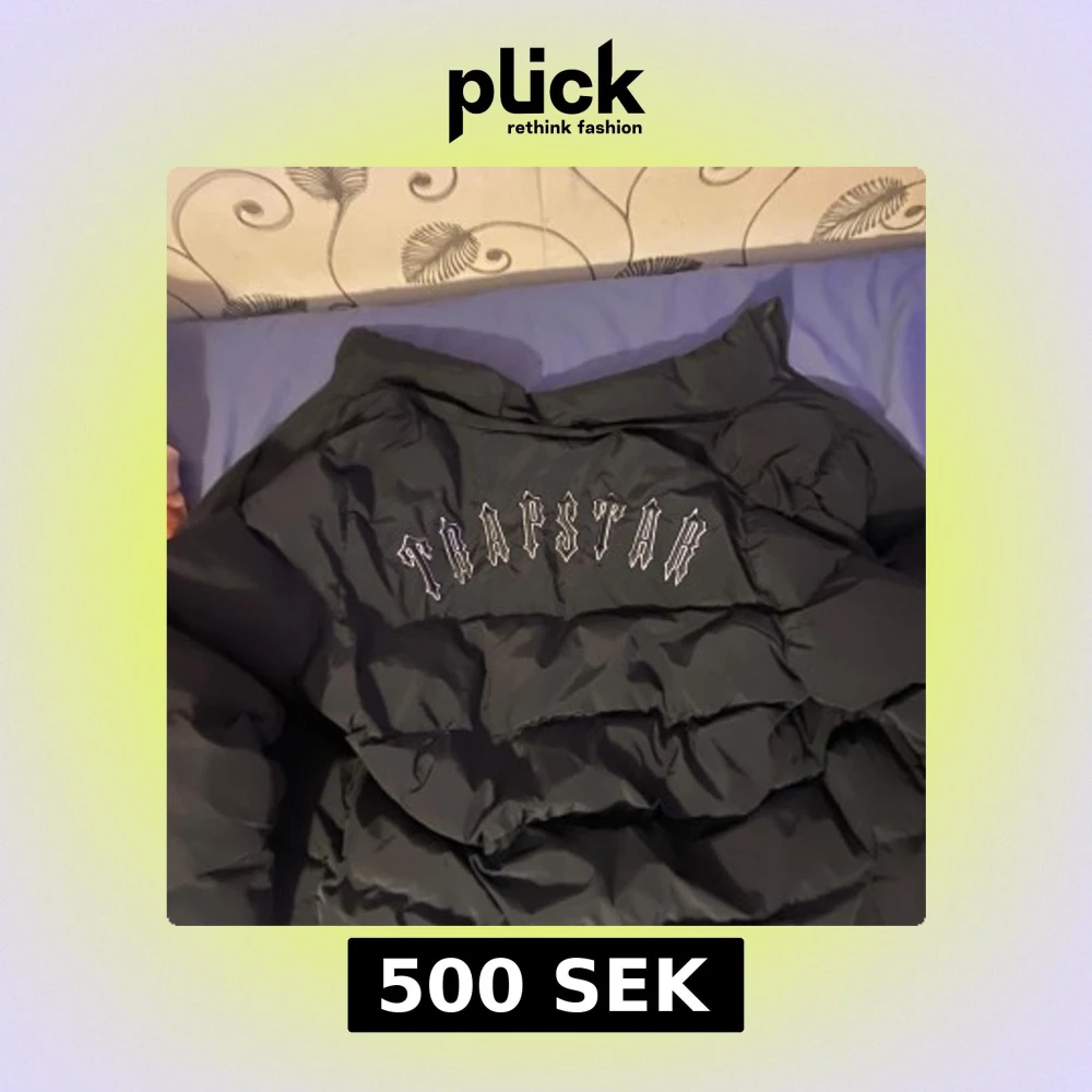 Svart trapstar jacka, använd och har ett hål innanför annars inga andra fel