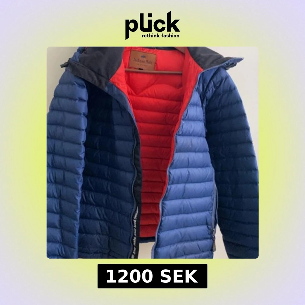 Säljer en blå pufferjacka från Jackson Hole med röd insida. Jackan har en dragkedja framtill och en huva för extra skydd. Perfekt för kyliga dagar! Pris kan diskuteras där vi både är glada