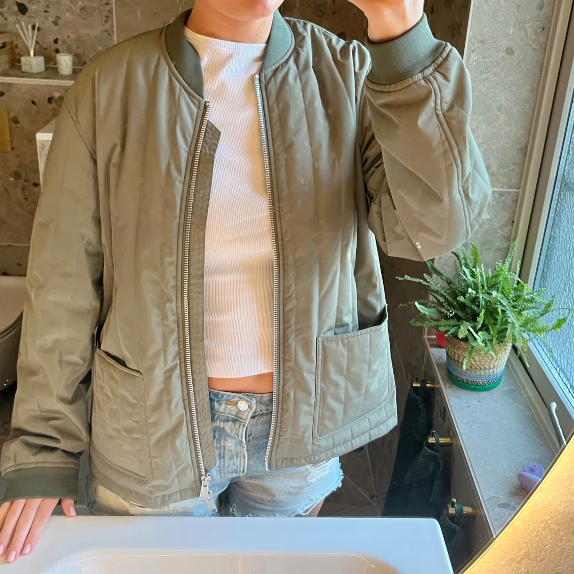 Så snygg grön bomberjacka. Storlek L och sitter lagom oversized på mig o jag brukar ha strl S-M. Nypris på dessa jackor ligger på runt 1500-2000kr❤️🥰🥰🥰