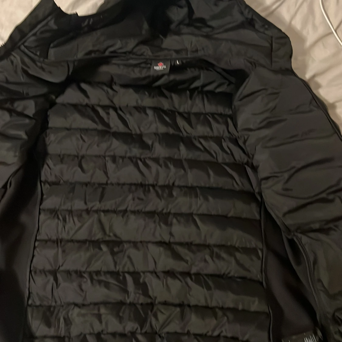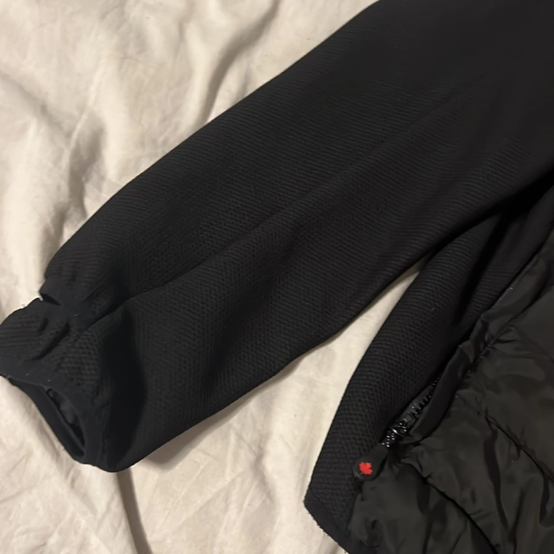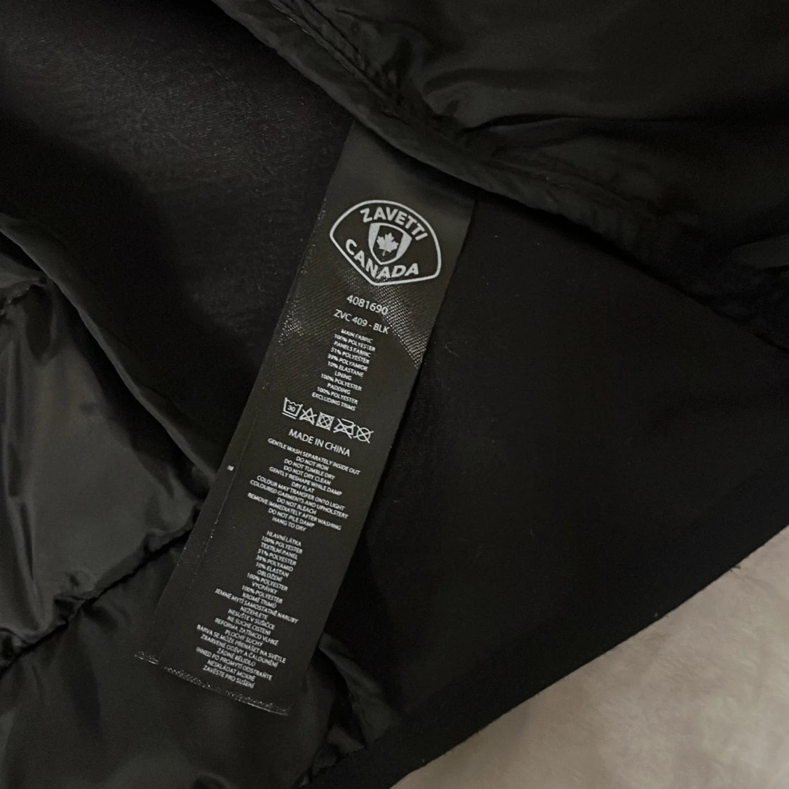 Svart jacka från Zavetti Canada med huva, quiltad framsida och ärmar i mjukare material. Jackan har dragkedja, bröstficka med logga och sportig vibe. Perfekt för kyliga dagar och snygg till streetwear.