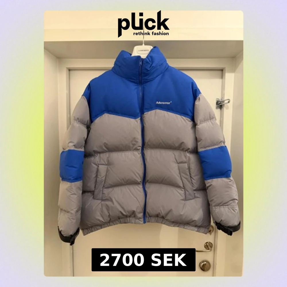 Selling an exclusive jacket from the South Korean fashion brand ADER error which is in top condition. Has been used very gently and is in very good condition without any marks or damage. The jacket is in size L but it is oversized, so a bit bigger. Incredibly warm with a Down fill power of 550~600. Long sleeve down-filled quilted puffer jacket panelled in grey technical satin and blue ripstop. Stowaway hood at stand collar. Zip closure at front. Logo printed at chest. Welt pockets at waist. Webb