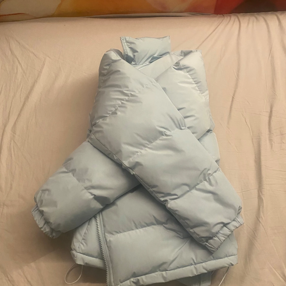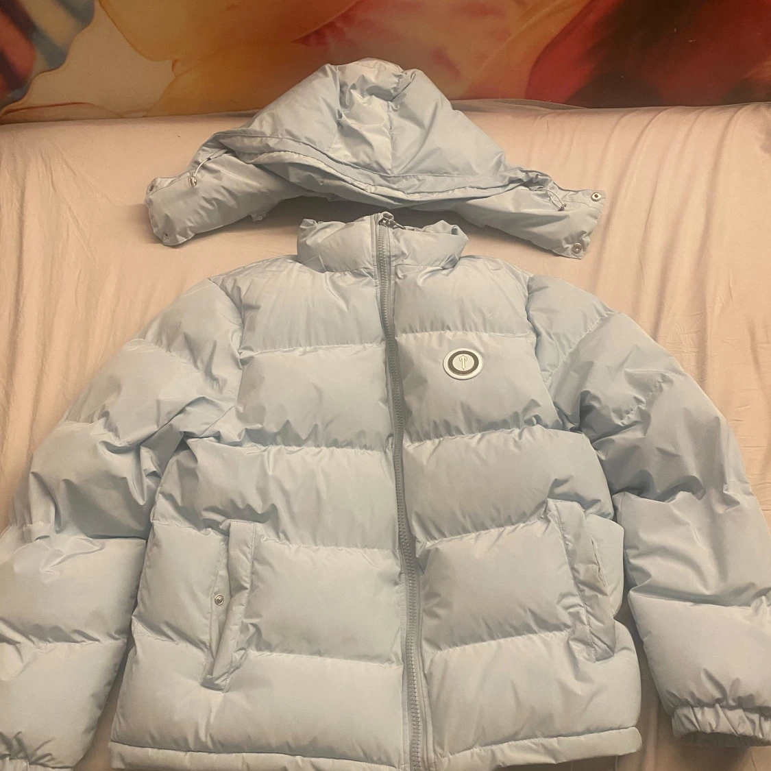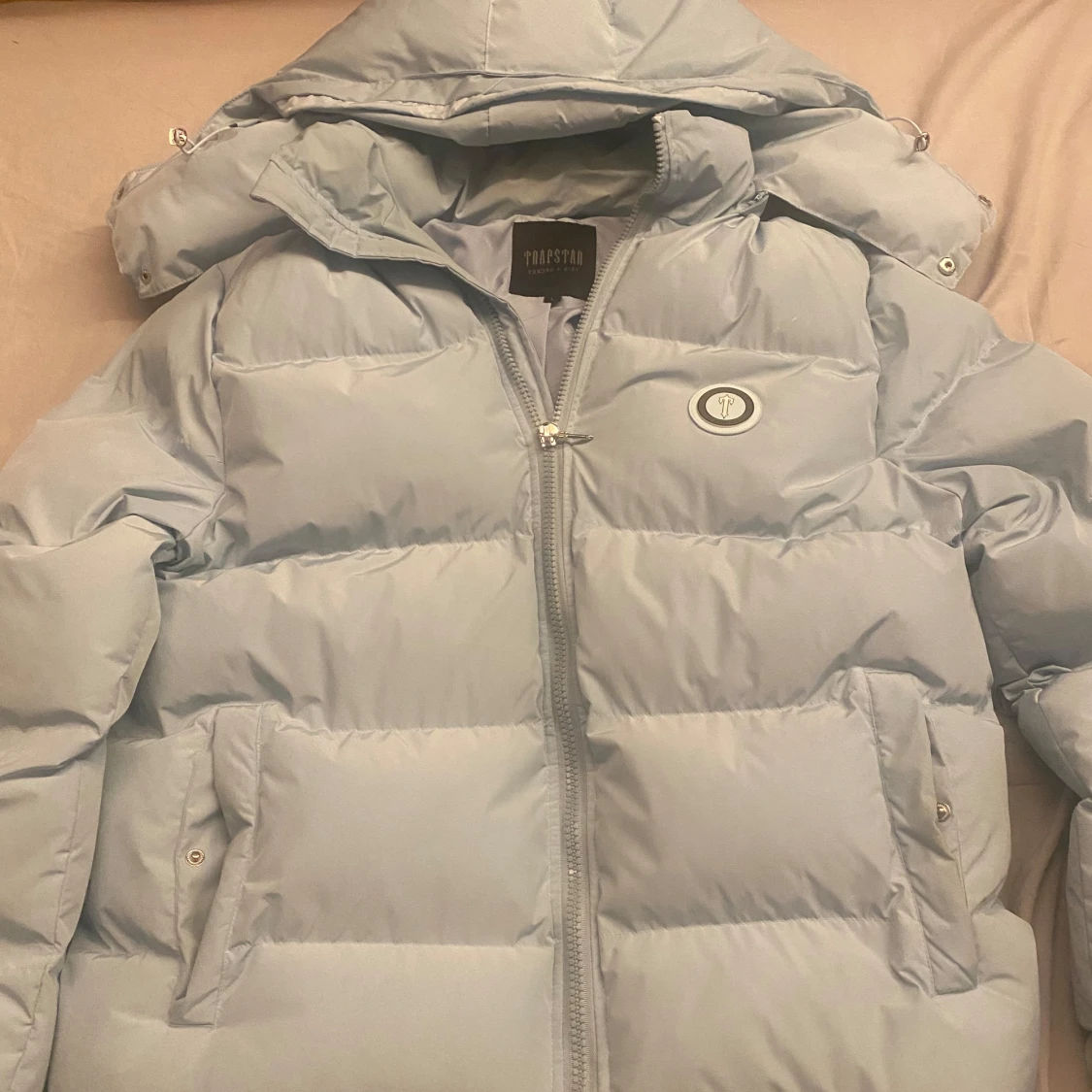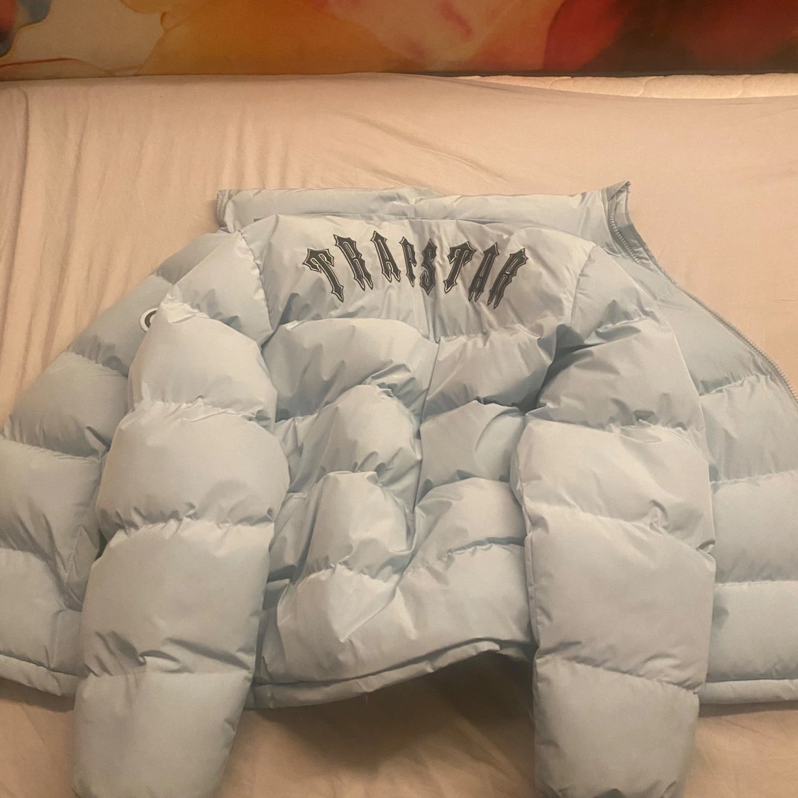 Säljer min babyblå Trapstarjacka, Jackan köptes i vintras och är i stort sett oanvänd eftersom den tyvärr var för stor för mig. Storleken är L, men den passar både dig som har L eller XL. Perfekt för vintern den håller värmen riktigt bra och jackan har en avtagbar huva.