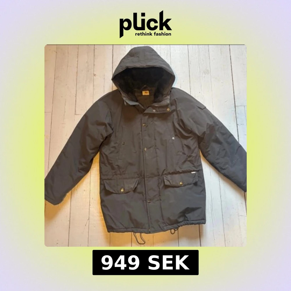 Snygg och varm parkas i svart, med huva och mjukt, varmt foder på insidan. Jackan har dragkedja framtill samt knappslå för extra vindskydd. Två stora fickor nedtill med lock och tryckknappar, samt två bröstfickor. Justerbar nederkant med dragsnöre. Jackan är använd men i gott skick och fungerar bra till vardag, vinterpromenader eller arbete utomhus. Levereras med dragkedja med en unik LEGO Darth Vader-nyckelring som dragkedjehänge (kan tas bort om man vill).