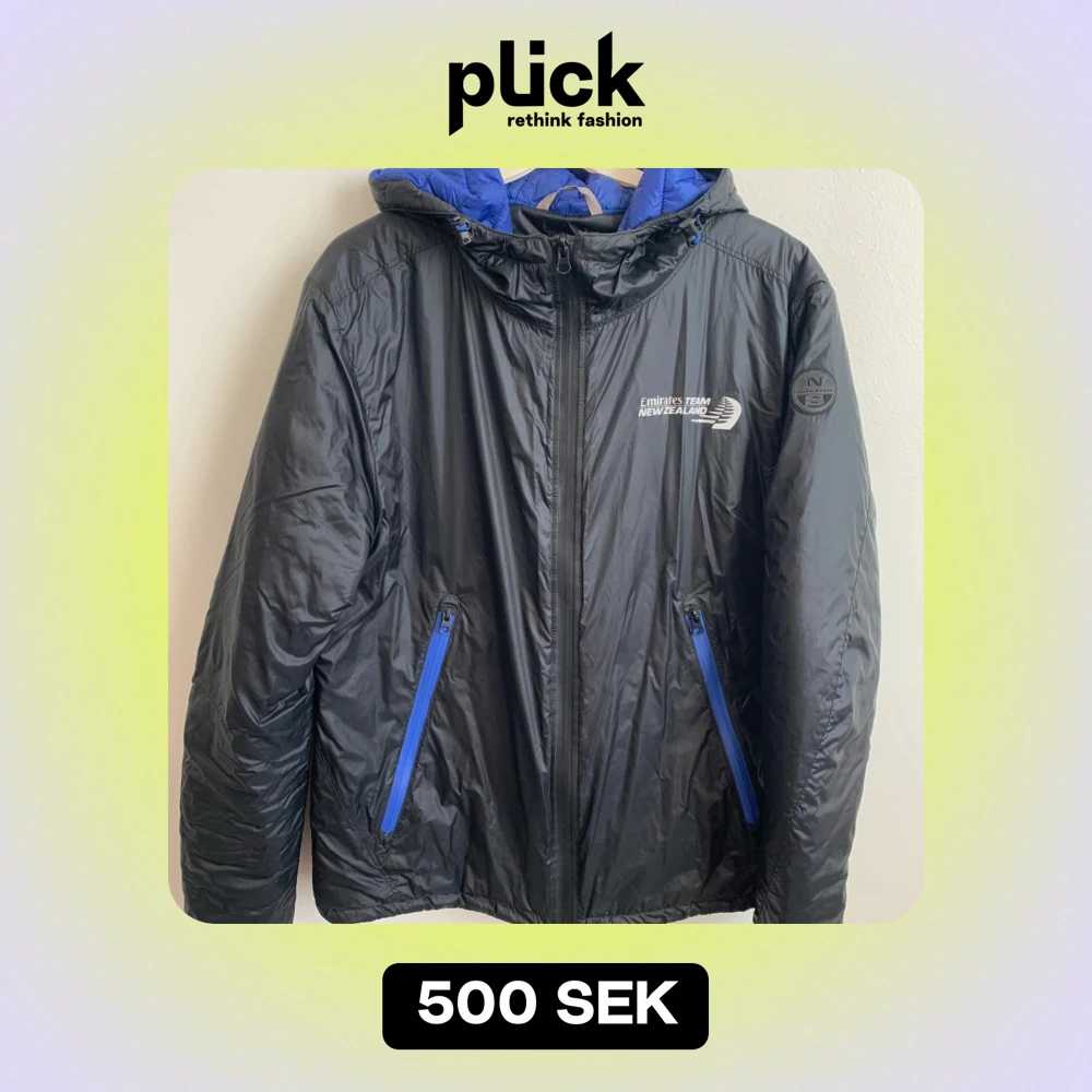 Säljer en svart jacka från Emirates Team New Zealand i storlek L. Jackan har en blå insida och är utrustad med dragkedja och huva. Perfekt för höst- och vårsäsongen med sin sportiga stil och bekväma passform.