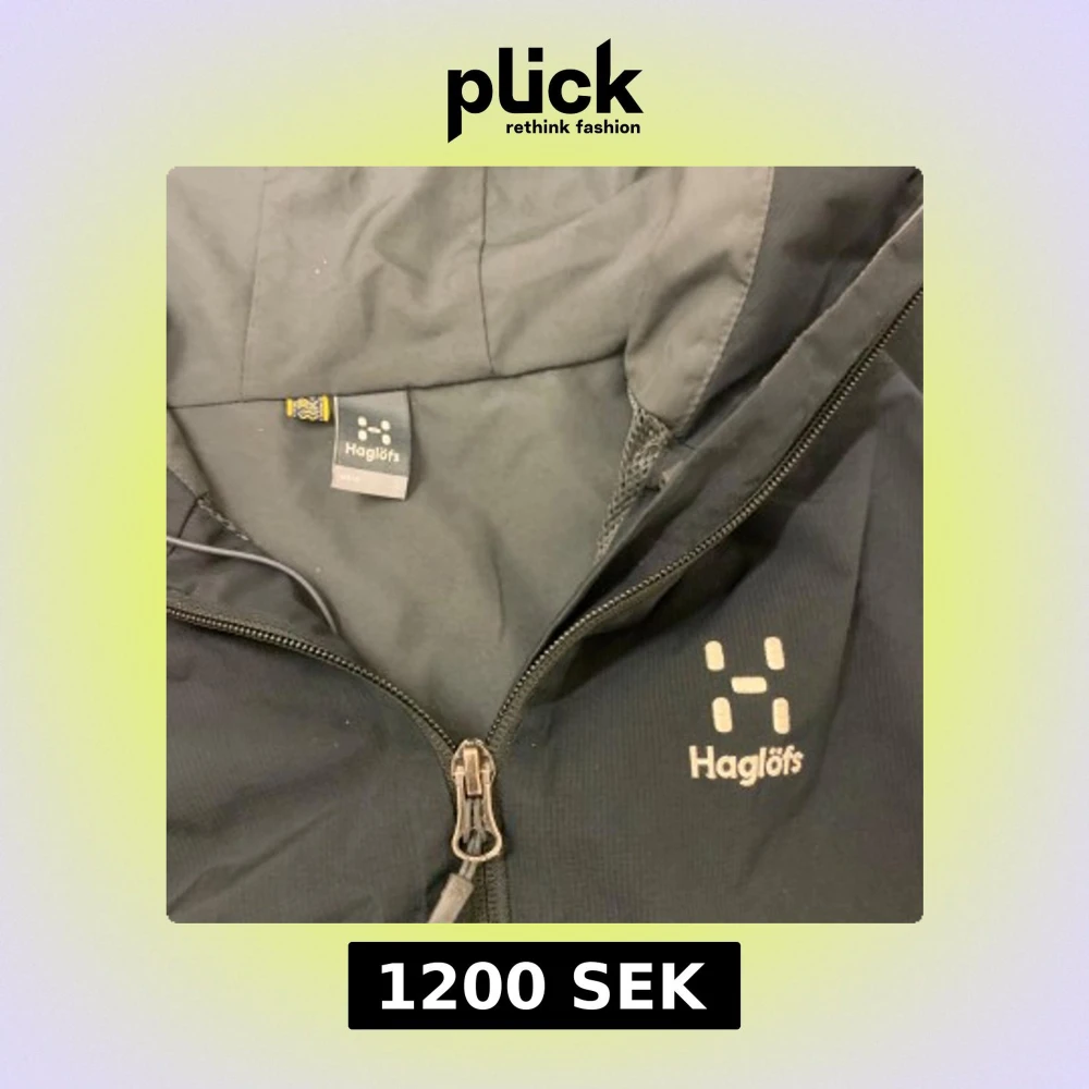 Säljer en svart vindjacka från Haglöfs med dragkedja framtill. Jackan har en enkel design med långärmade ärmar och är perfekt för blåsiga dagar. Den är funktionell och stilren, idealisk för utomhusaktiviteter. Storlek L
