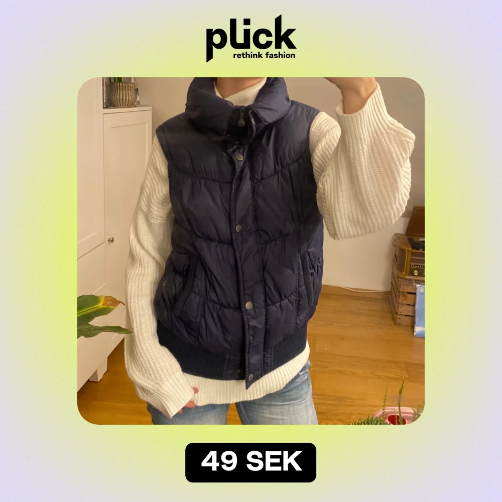 Säljer en snygg och varm mörkblå dunväst från Clockhouse. Västen har knappar framtill och en hög krage som skyddar mot kyla. Perfekt för höst och vinter!🎀