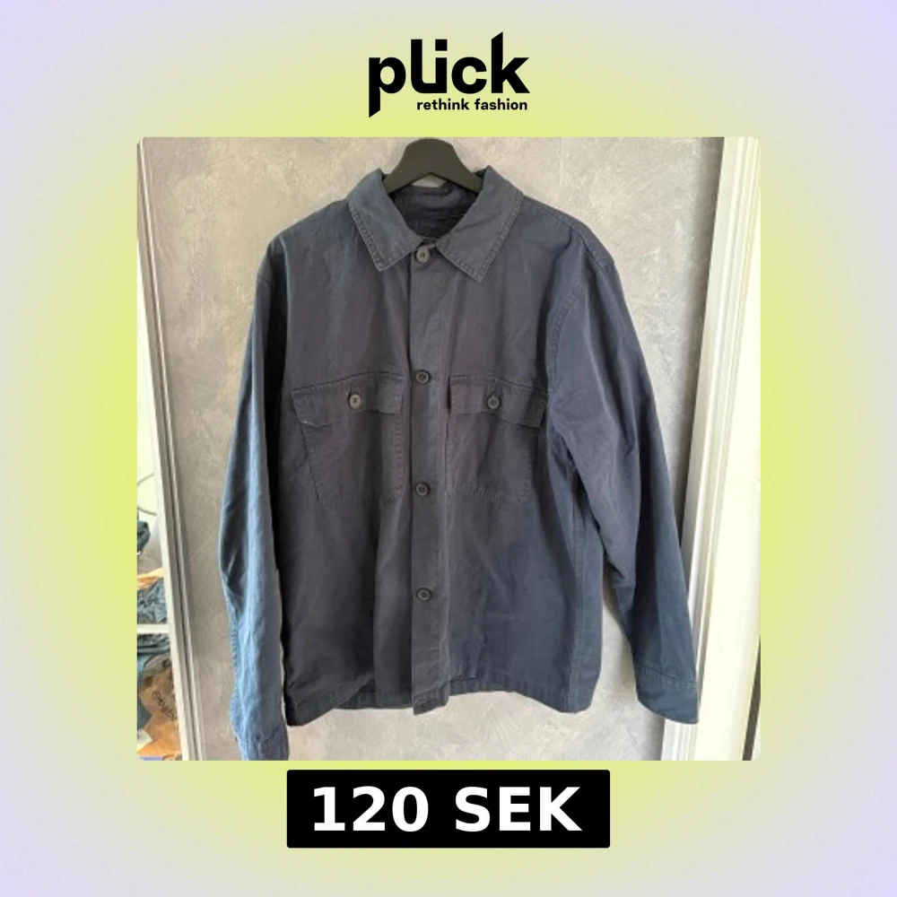 Snygg mörkblå overshirt med klassisk krage och två stora bröstfickor med knappar. Jackan har raka linjer, knäppning framtill och långa ärmar. Perfekt att slänga över en hoodie eller t-shirt för en chill look.