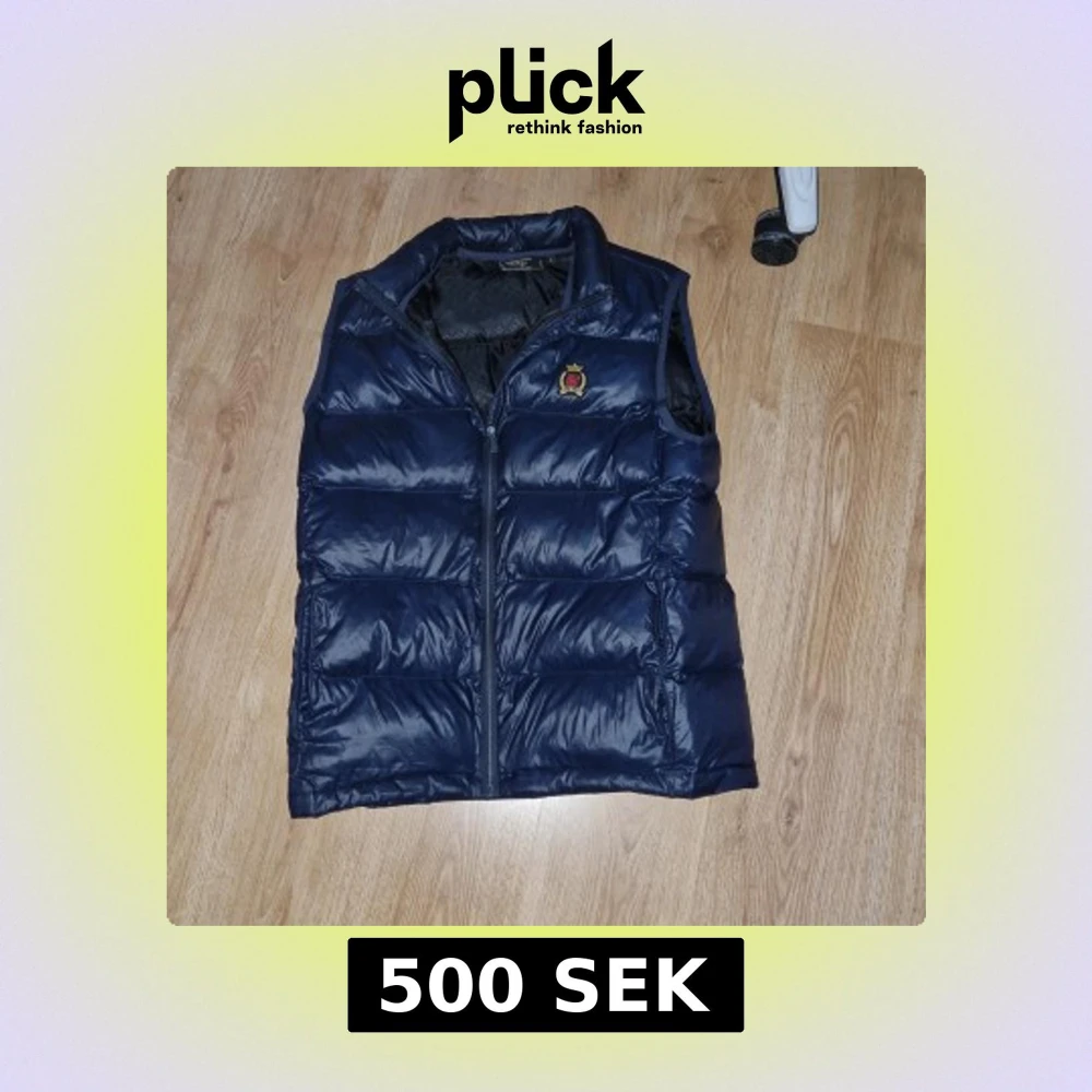 Säljer en snygg mörkblå dunväst från SikSilk. Västen har en stilren design med ett litet emblem på bröstet. Perfekt för kyligare dagar när du vill hålla stilen. Riktigt go väst