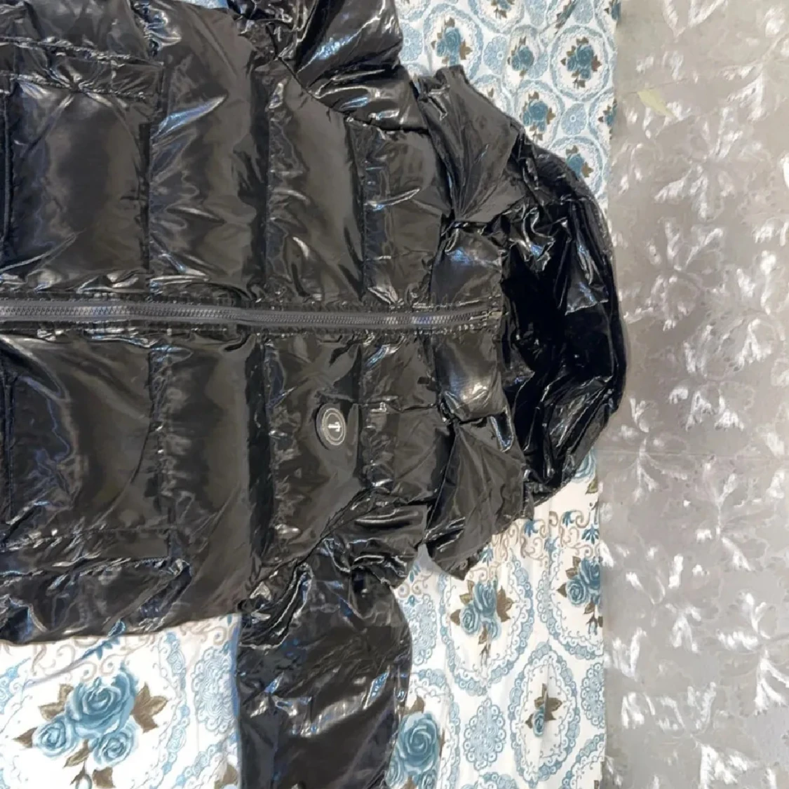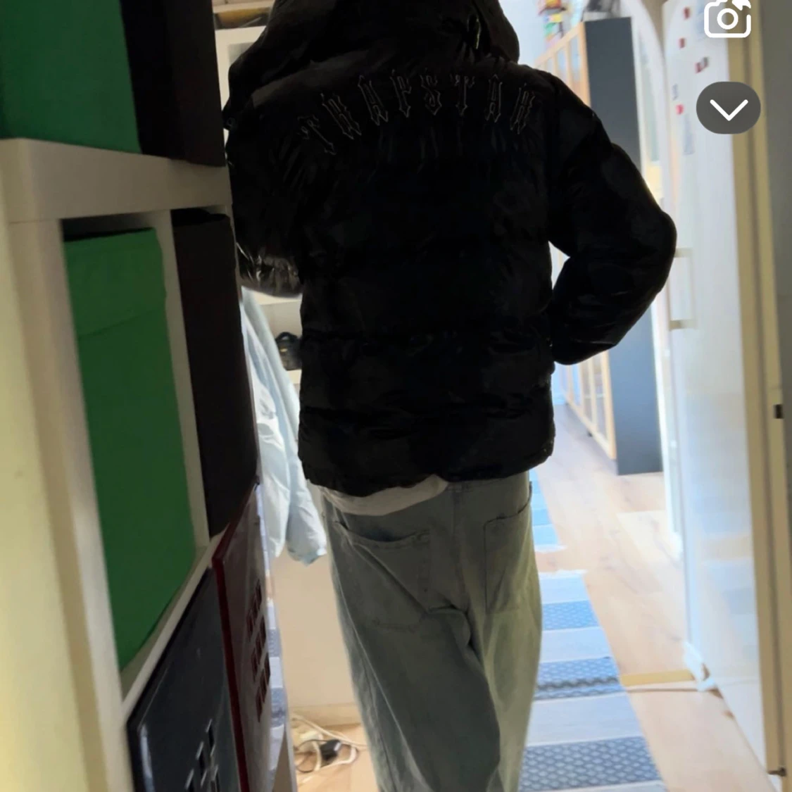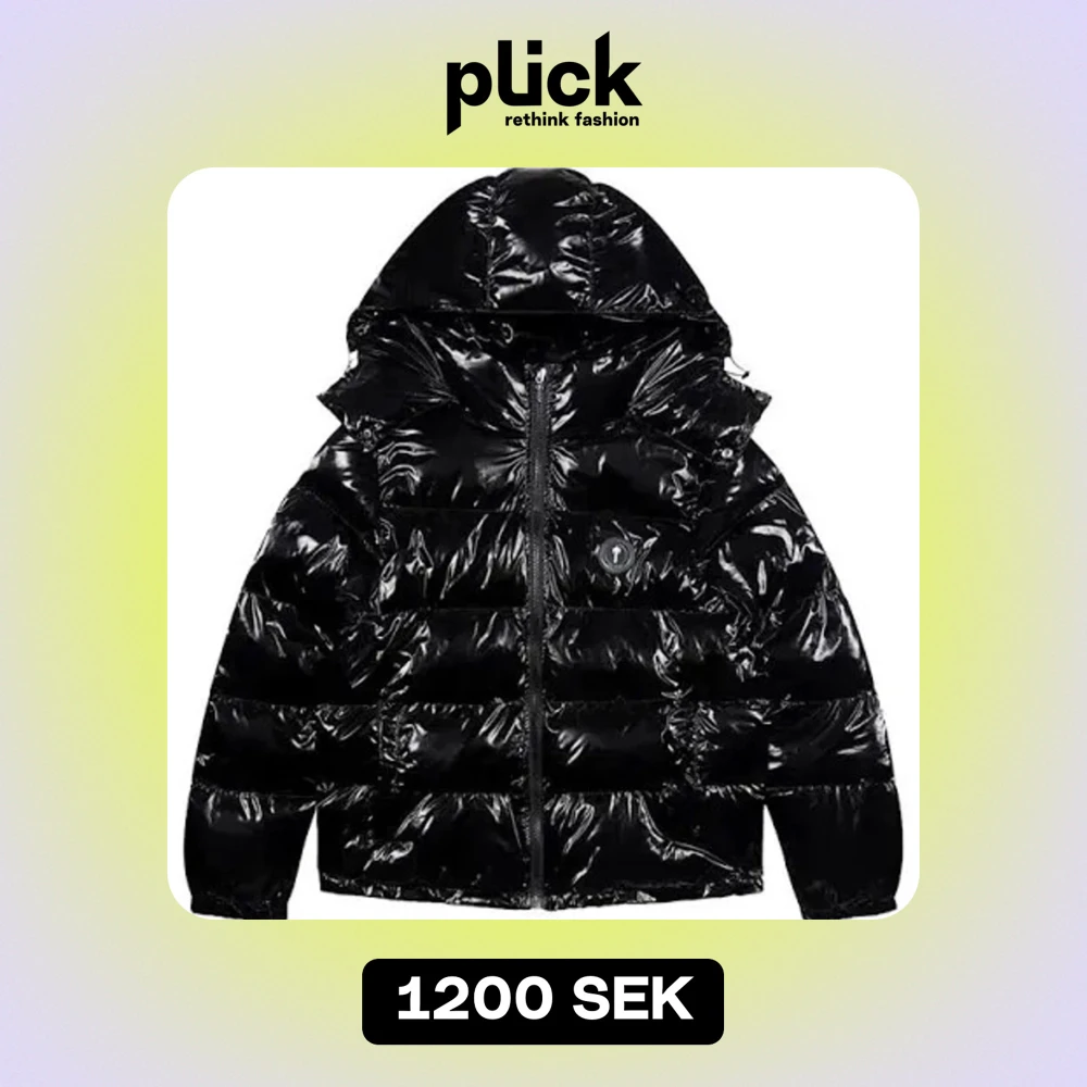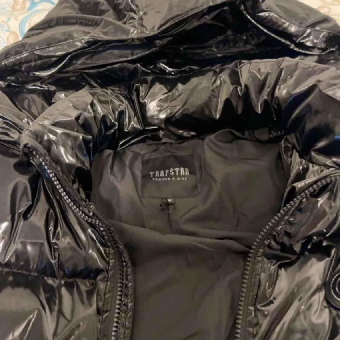 Snygg svart pufferjacka från Trapstar med glansig finish och dragkedja framtill. Jackan har en huva och är perfekt för kyligare väder. Den har en modern look med märkets logga diskret placerad. Skittjock asså den håller en varm fr