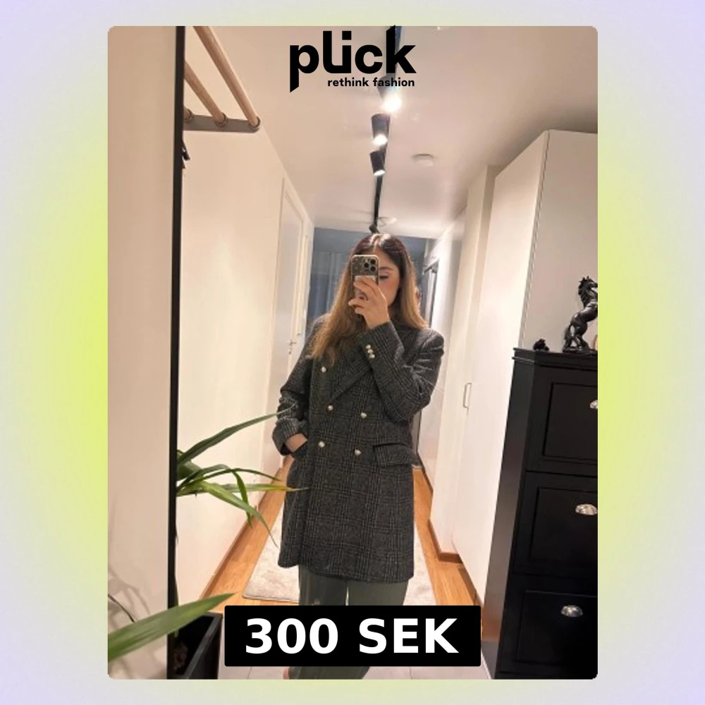Säljer en snygg rutig kappa från MNG i svart och grått. Dubbelknäppt modell med dekorativa guldknappar och klassisk krage. Kappan har två fickor framtill och är fodrad. Perfekt för dig som gillar en stilren och trendig look.