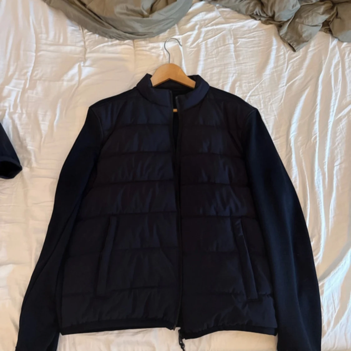 Snygg svart pufferjacka med quiltade paneler framtill och släta ärmar. Jackan har en stilren look med ståkrage och dragkedja hela vägen. Perfekt för dig som vill ha en enkel men modern jacka till höst och vinter.