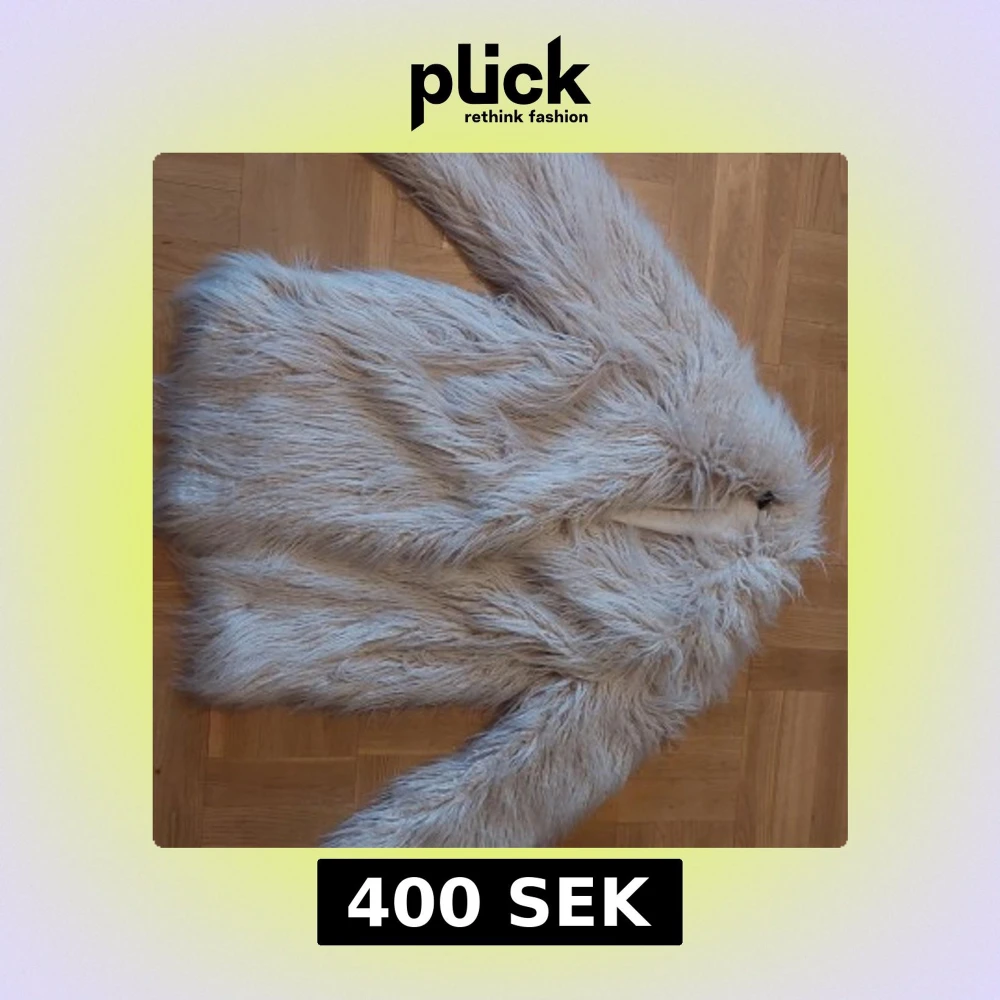 Säljer en fluffig beige pälsjacka i syntetmaterial. Jackan har en mysig och trendig look med långa ärmar och är perfekt för kyligare dagar. Den är tillverkad av polyester och akryl, vilket ger en mjuk och bekväm känsla.