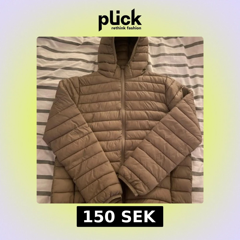 Säljer en beige pufferjacka från H&M Divided i storlek L. Jackan har huva, horisontella quiltade paneler och dragkedja framtill. Perfekt för kyliga dagar och har en clean, modern look som funkar till många stilar.