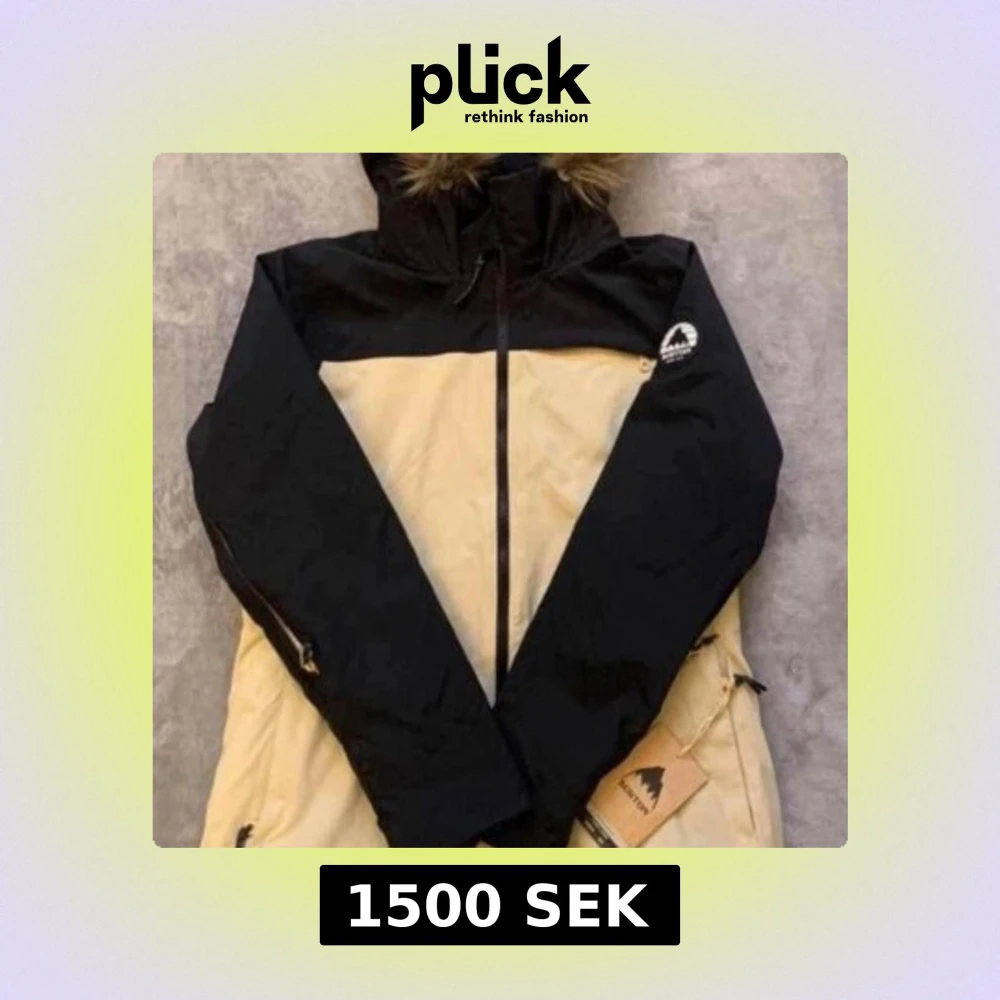 Snygg parkajacka från Burton i beige och svart med huva och fuskpäls. Jackan har dragkedja framtill, praktiska fickor och logga på ärmen. Perfekt för kalla dagar och har en clean, sportig look som funkar till streetwear.