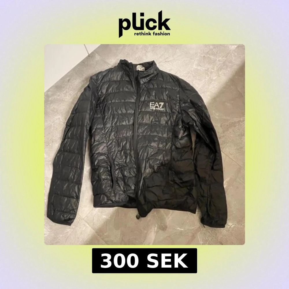 Snygg svart pufferjacka från Emporio Armani EA7. Jackan har en dragkedja framtill och är långärmad. Perfekt för kyligare dagar med sin stilrena design och lätta material. Storlek L men sitter som M, inga defekter förutom att den för tillfället är lite skrynklig.