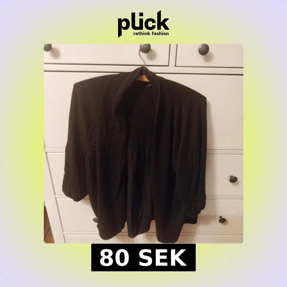 Säljer en stilren kofta. Den har en lös passform och trekvartsärmar, perfekt för en avslappnad men ändå elegant look. Materialet känns mjukt och bekvämt, vilket gör den lätt att bära hela dagen.